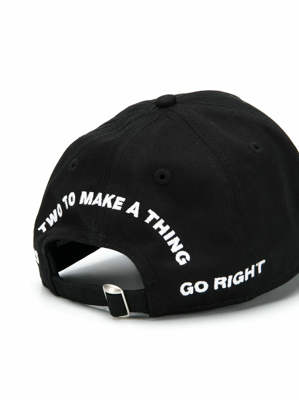 Casquette à patchs brodés en coton Dsquared2 avec visière incurvée, design à œillets, taille ajustable, logo imprimé sur le devant, détails brodés et effet délavé usé. Couleur : noir.
