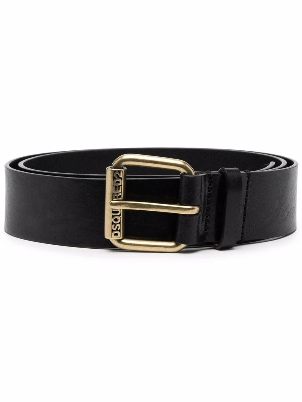 Fermeture à boucle dorée, logo gravé, taille ajustable. Couleur : noir. Matière : cuir.