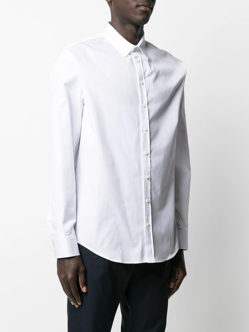 Col classique, boutonnière sur le devant, manches longues, poignets boutonnés, ourlet incurvé. Couleur : blanc. Matière : coton.