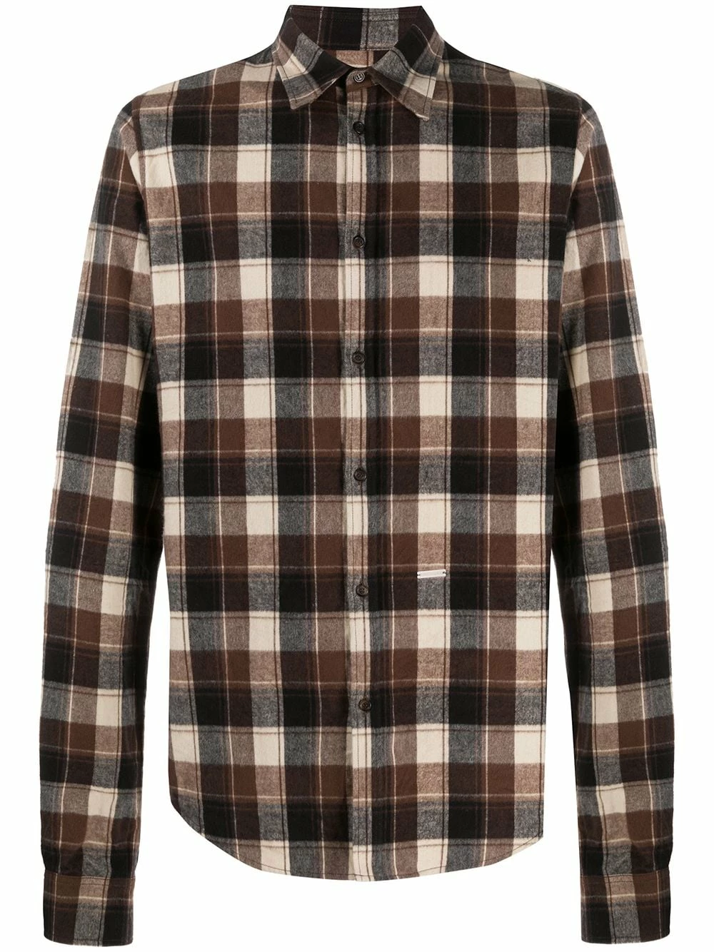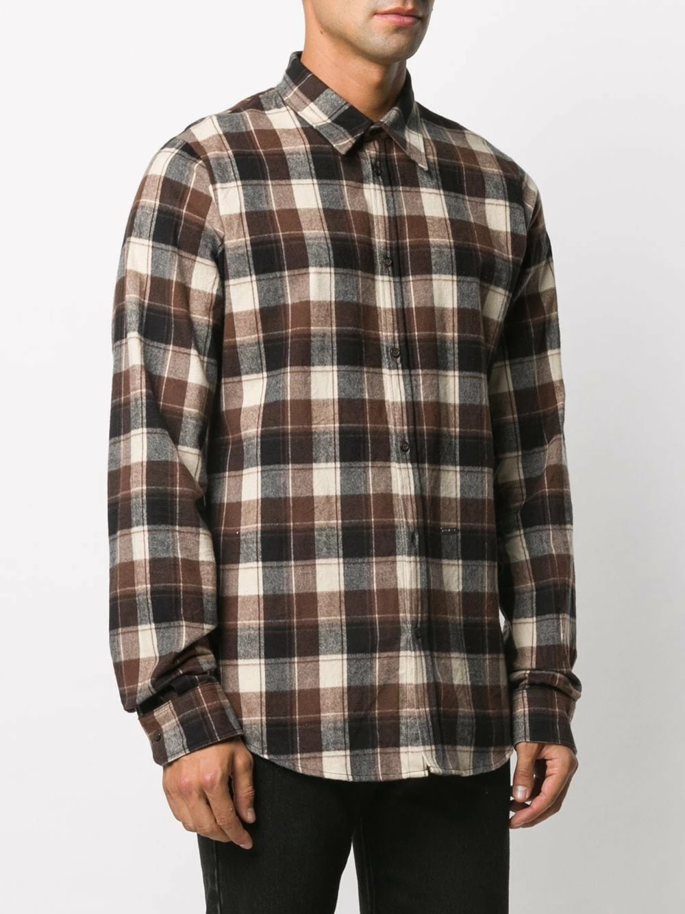 Col classique, manches longues, boutonnière sur le devant, ourlet incurvé. Couleur : marron. Matière : coton.