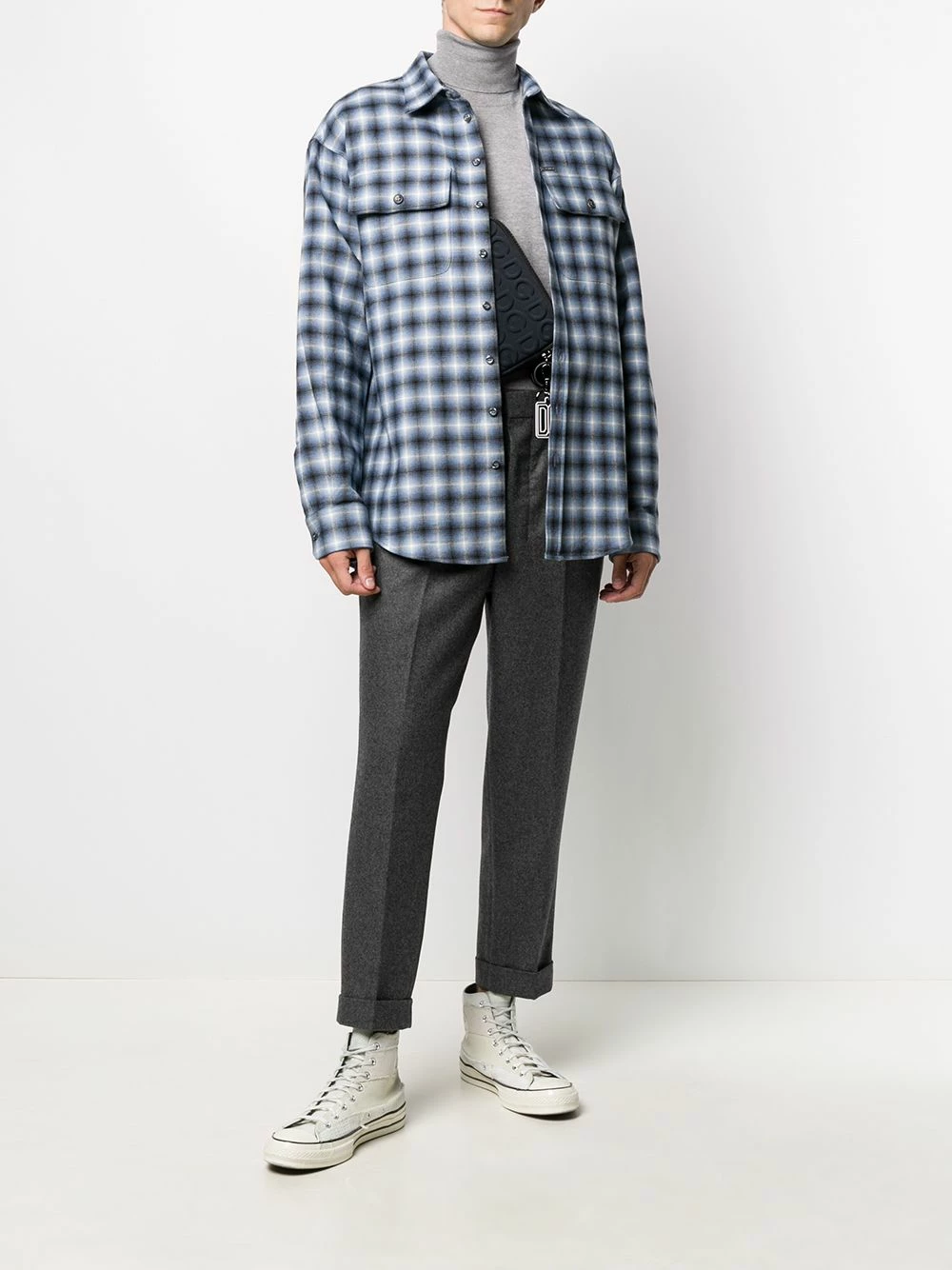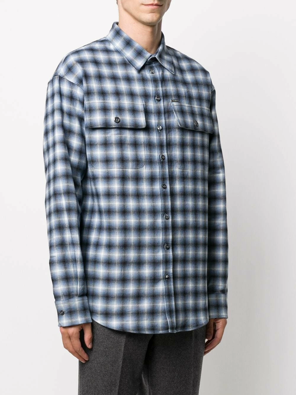 Col classique, carreaux, boutonnière sur le devant, effet d’épaules descendues, patch logo sur le devant, deux poches poitrine à rabat, manches longues, ourlet incurvé. Matière : coton.
