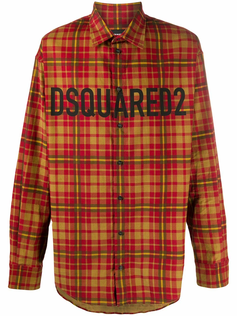 Chemise à carreaux en coton Dsquared2 avec col classique, boutonnière sur le devant, manches longues, poignets boutonnés, forme détendue et ourlet incurvé. Couleur : multicolore.