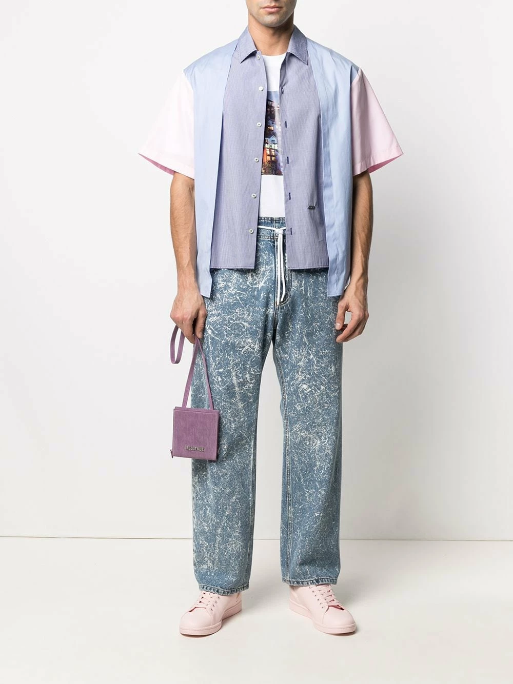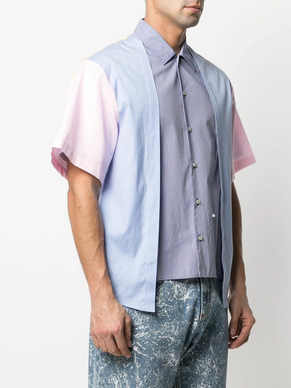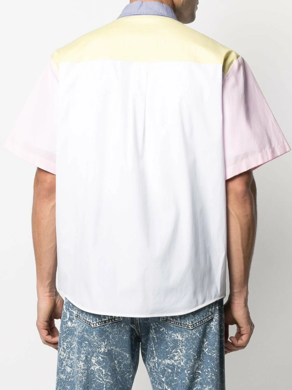 Effet superposé, design à empiècements colour block, plaque logo argentée, col classique, boutonnière sur le devant, manches courtes, ourlet incurvé. Couleur : Multicolore. Matière : coton.