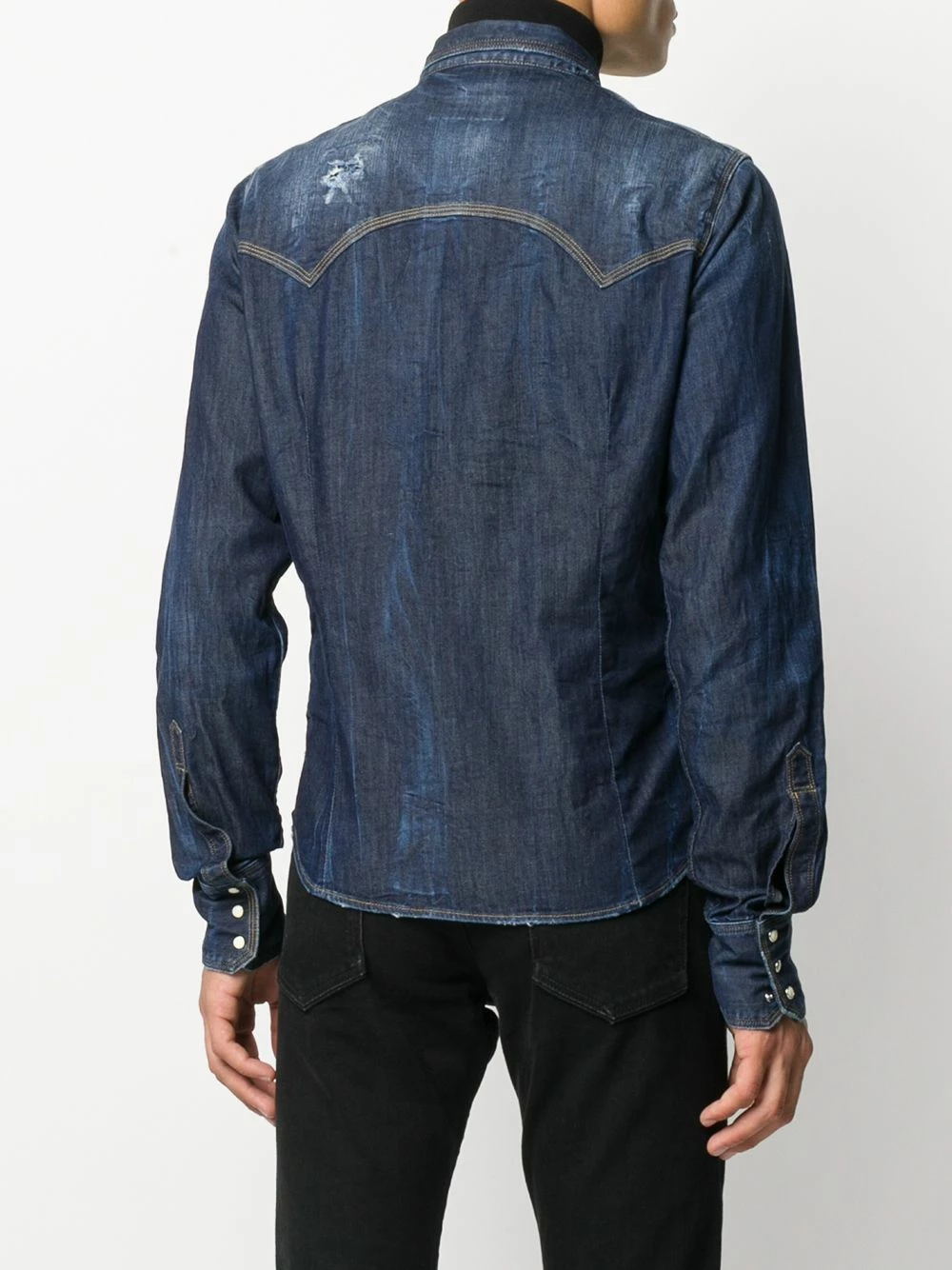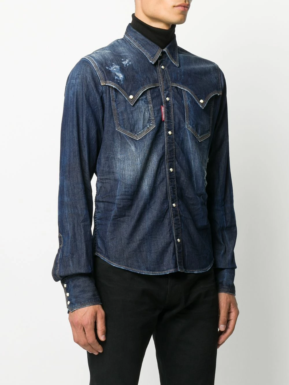 Patte de boutonnage sur le devant, deux poches poitrine à rabat, col classique, manches longues, coupe stretch.