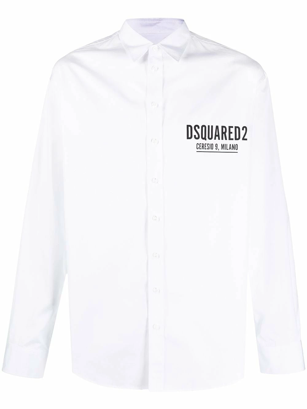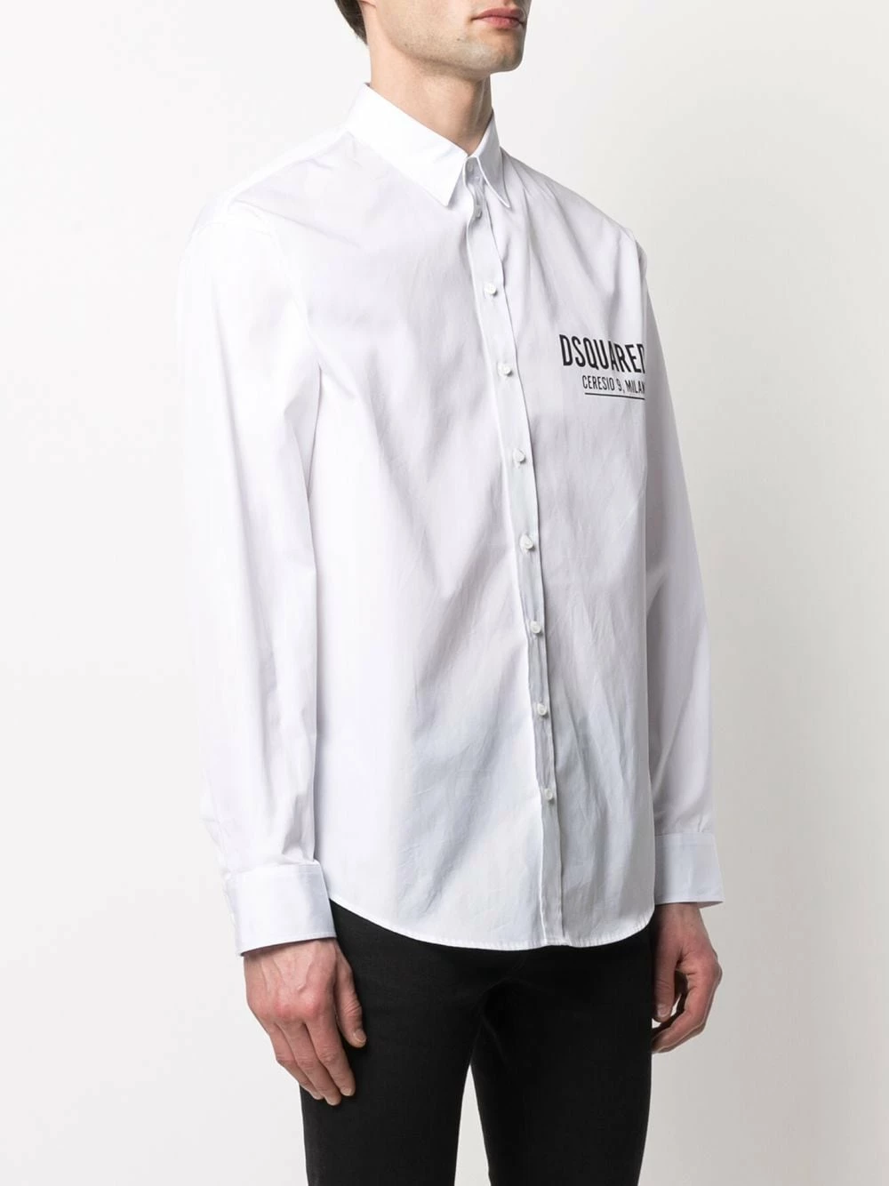 Logo imprimé à la poitrine, col classique, boutonnière sur le devant, poignets boutonnés, ourlet incurvé. Couleur : Blanc. Matière : coton.