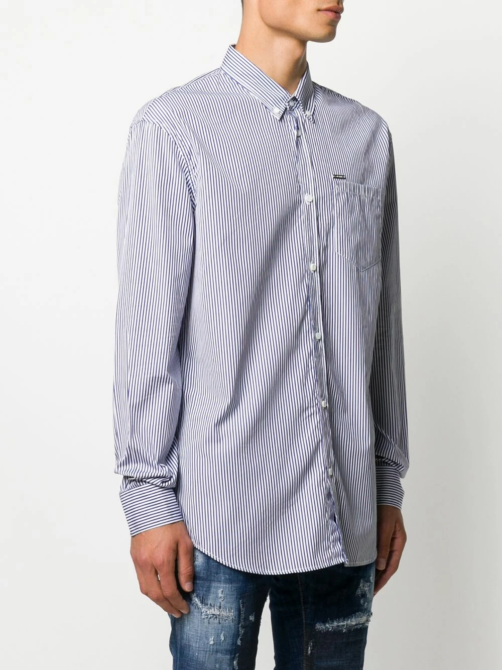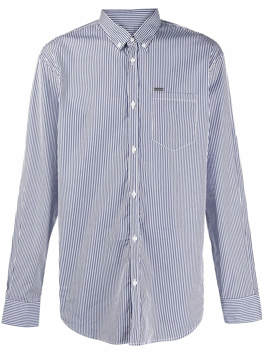 Rayures verticales imprimées, col boutonné, boutonnière sur le devant, manches longues, poche poitrine plaquée, plaque logo argentée, ourlet incurvé. Matière : coton.