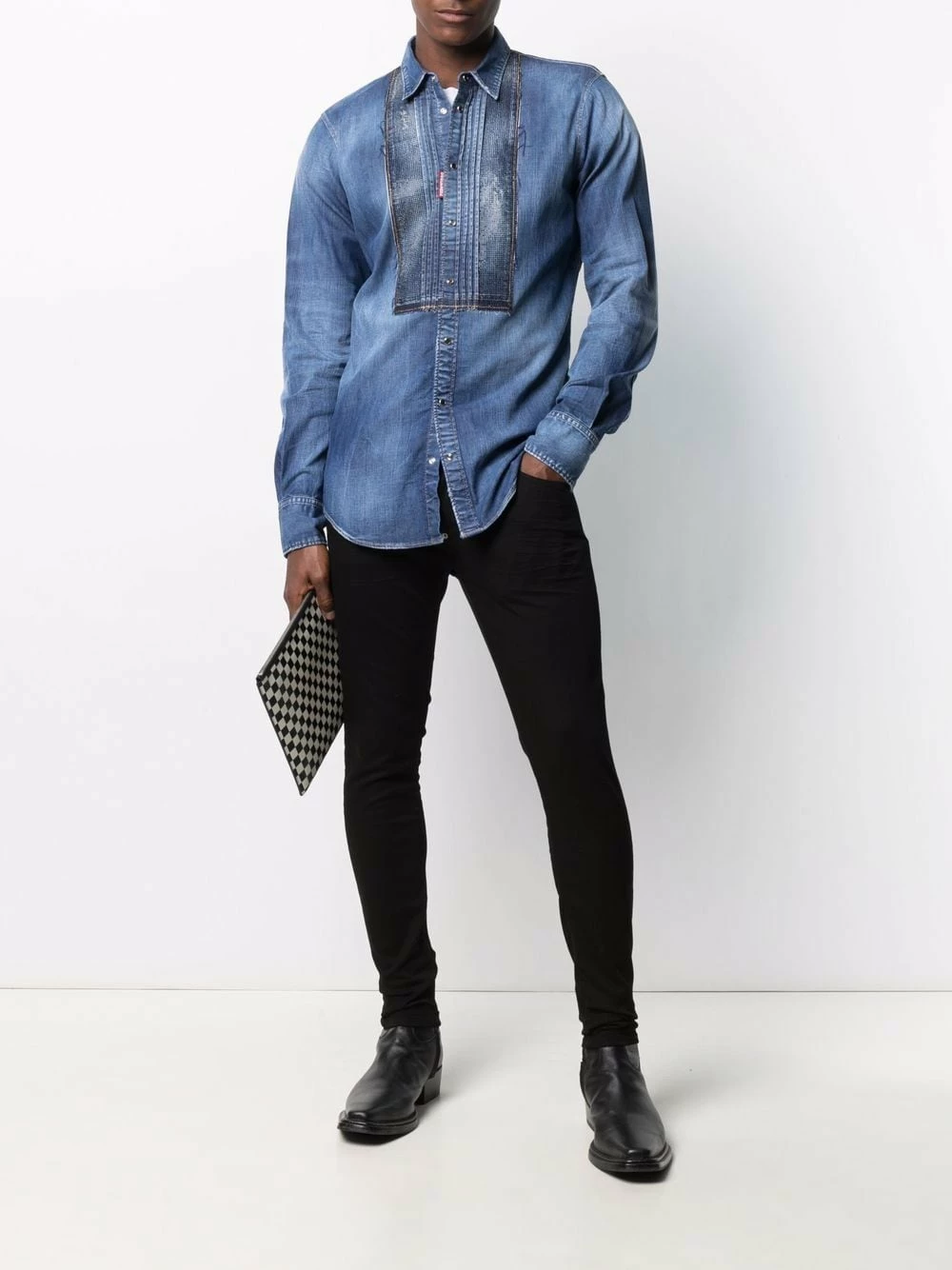 Boutonnière sur le devant, col classique, manches longues, ourlet incurvé.