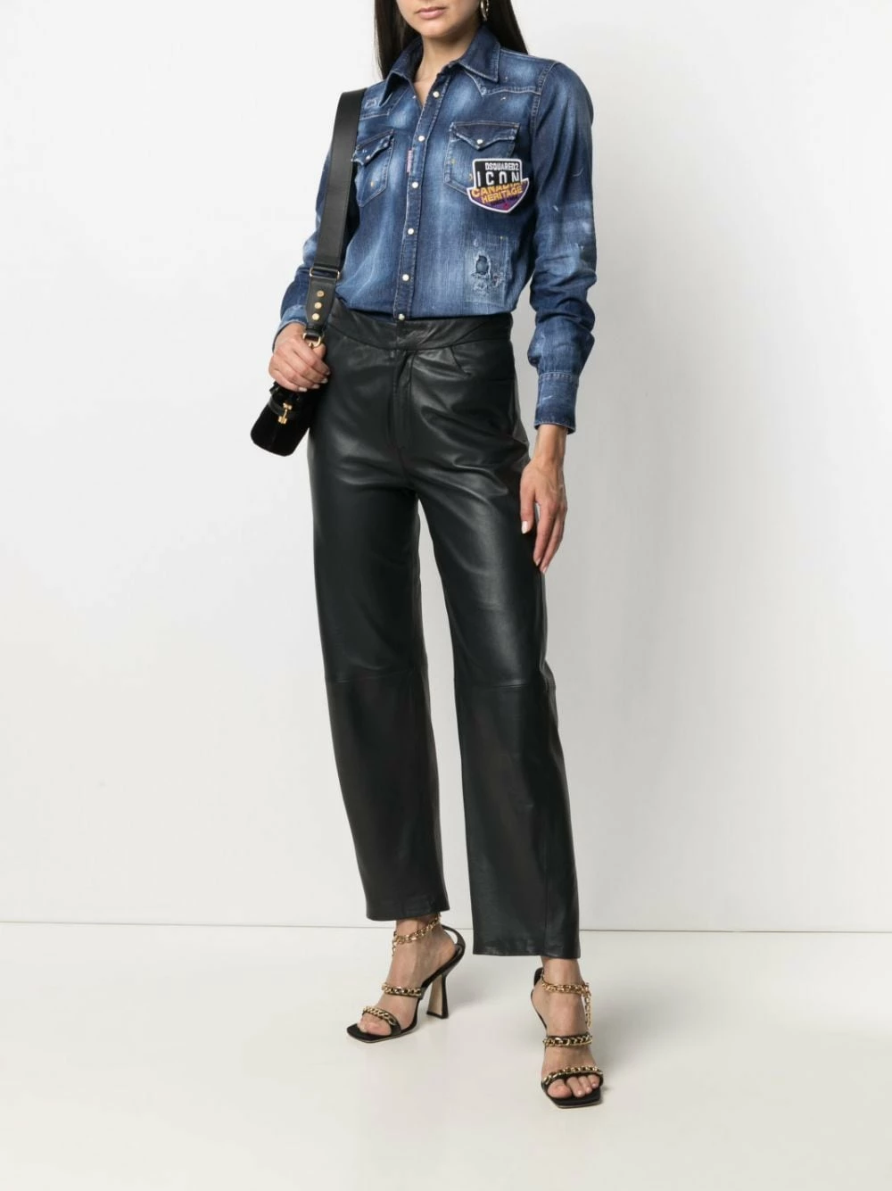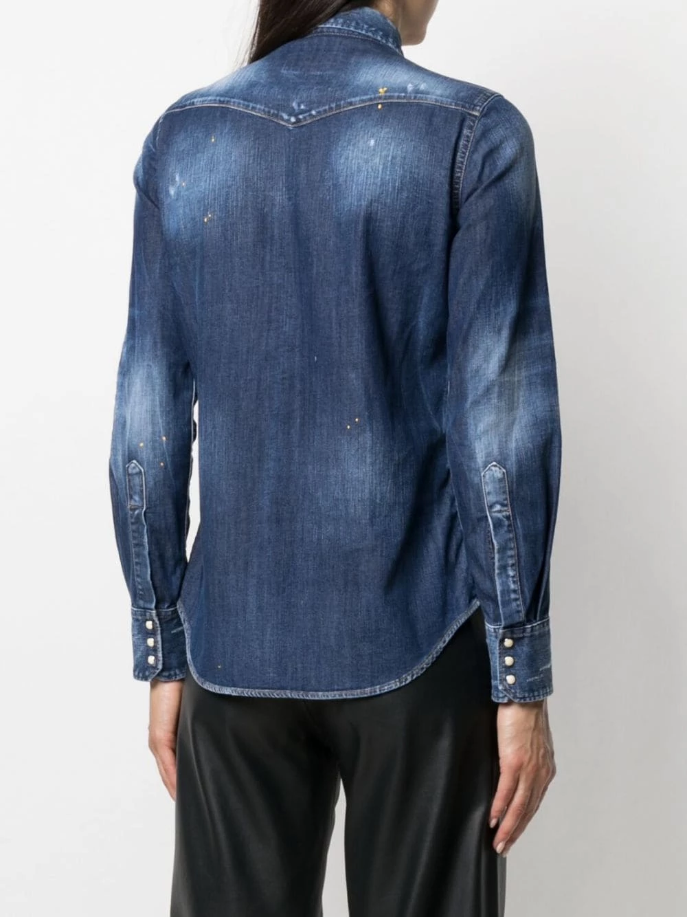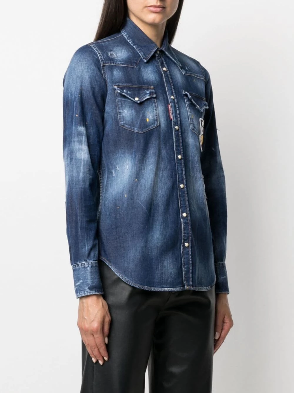 Patch poitrine à logo, effet usé, col classique, manches longues, deux poches poitrine à rabat, boutonnière sur le devant.