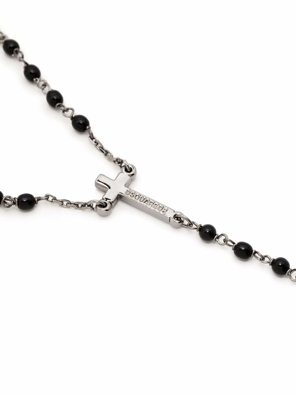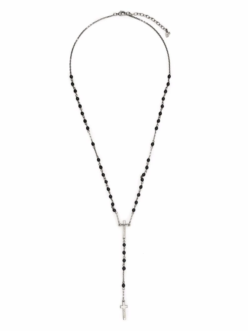 Finitions en métal argenté, ornements en perles brodées, fermoir mousqueton. Couleur : noir.