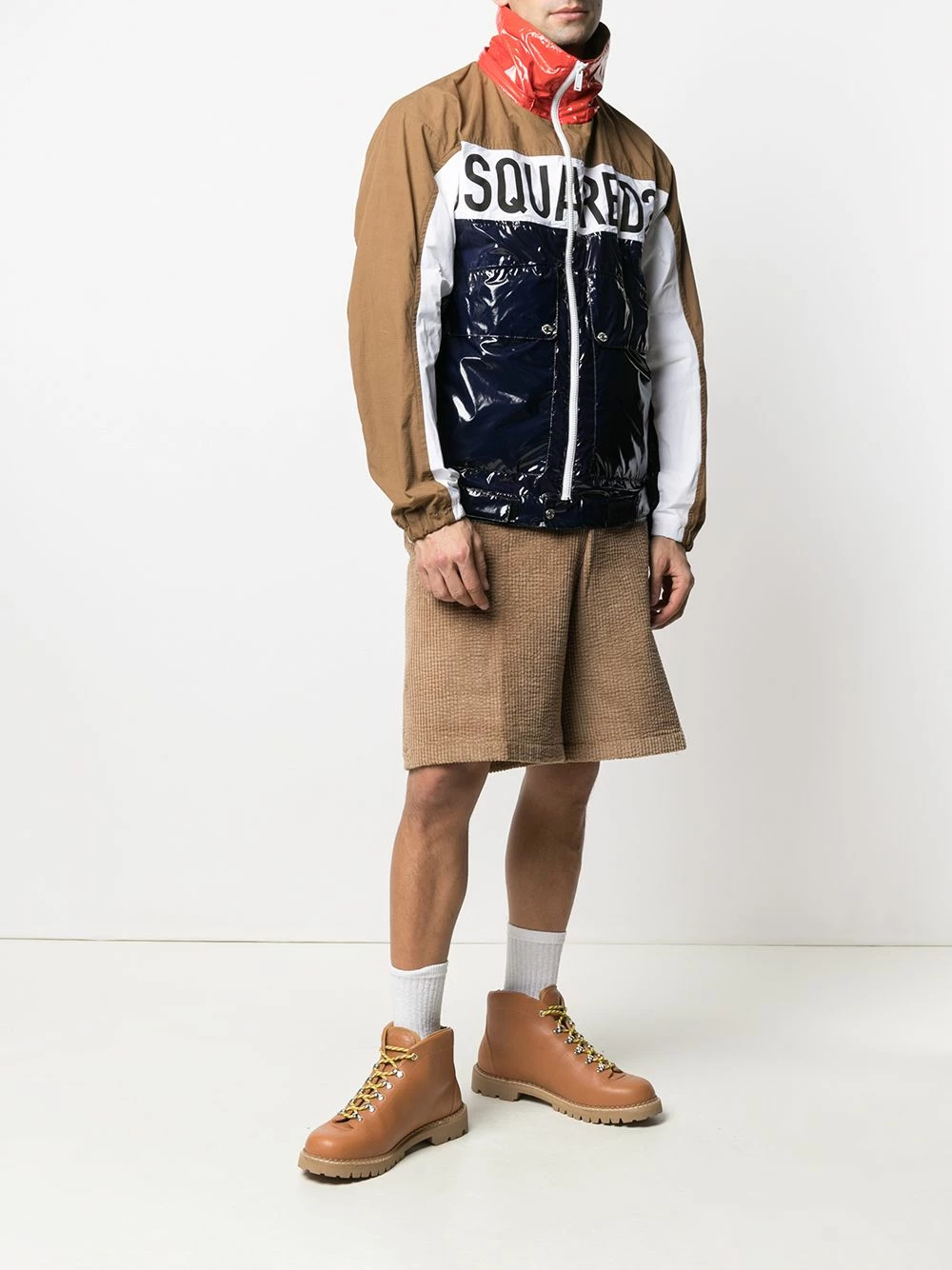 Design à empiècements colour block, logo imprimé sur le devant, capuche classique, manches longues, poignets élastiqués, fermeture zippée devant, deux poches poitrines boutonnées.