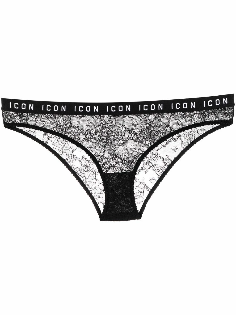 Motif Icon signature, style brésilien, ceinture élastique, détails en dentelle à fleurs, taille mi-haute. Couleur : noir. N’oubliez pas : cet article doit être essayé par-dessus vos propres vêtements.