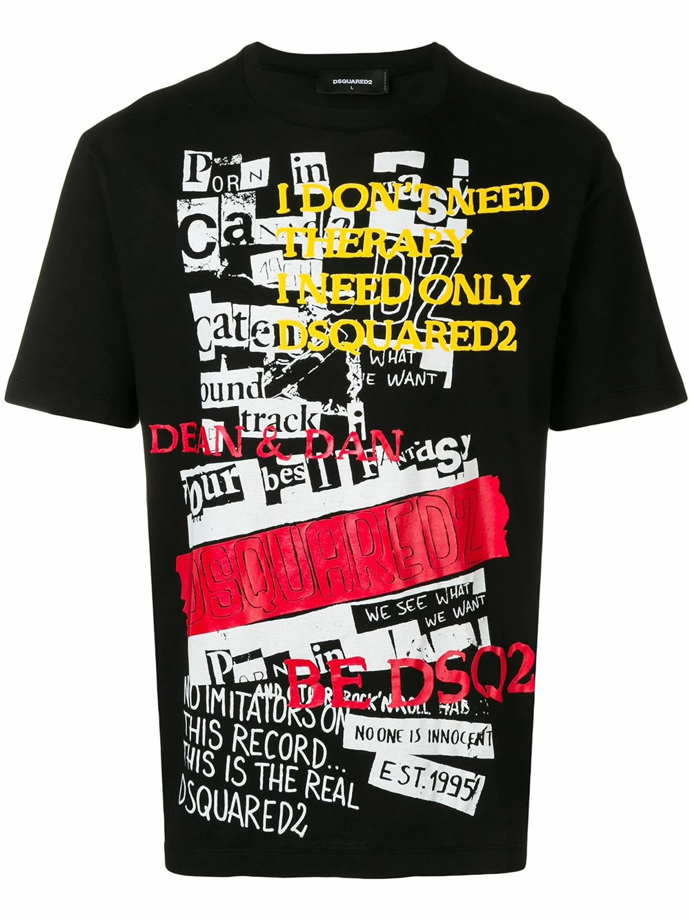 T-shirt à slogan imprimé en coton Dsquared2 avec encolure ras du cou, manches courtes, forme détendue et ourlet droit. Couleur : multicolore.