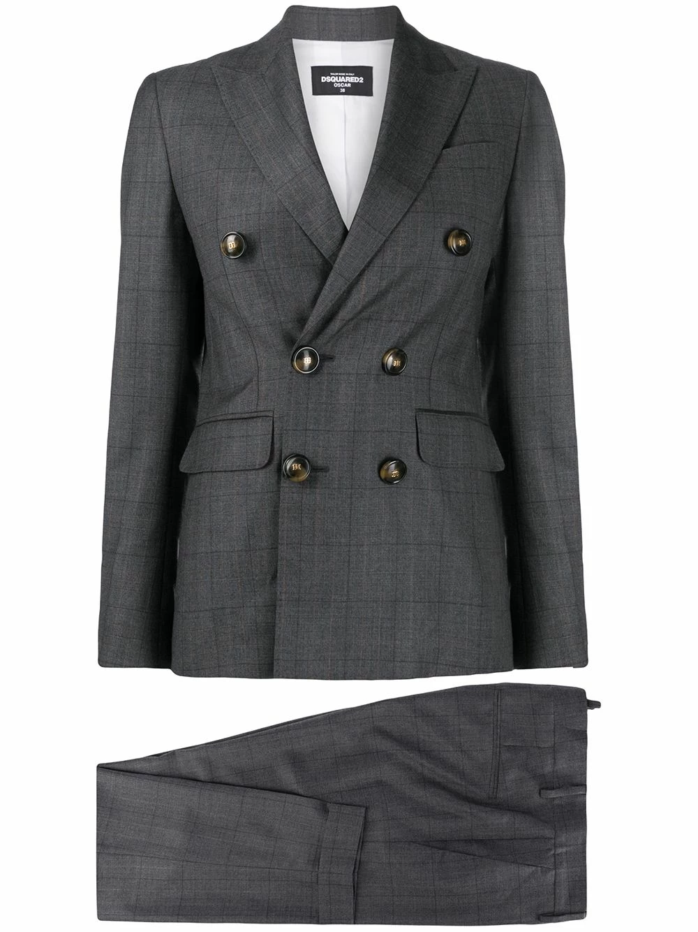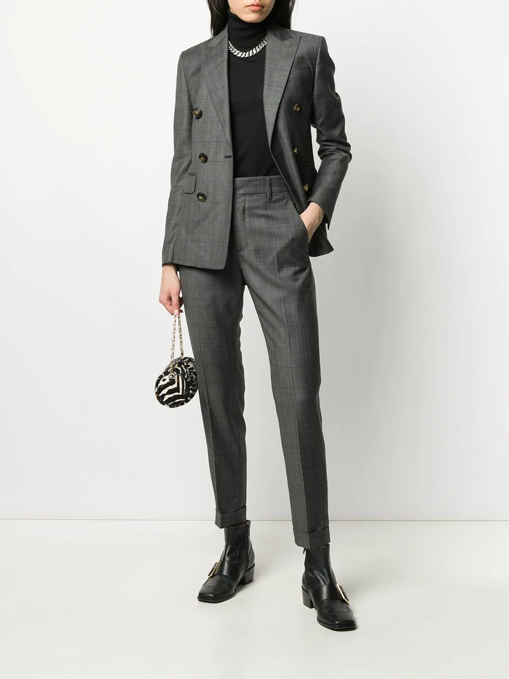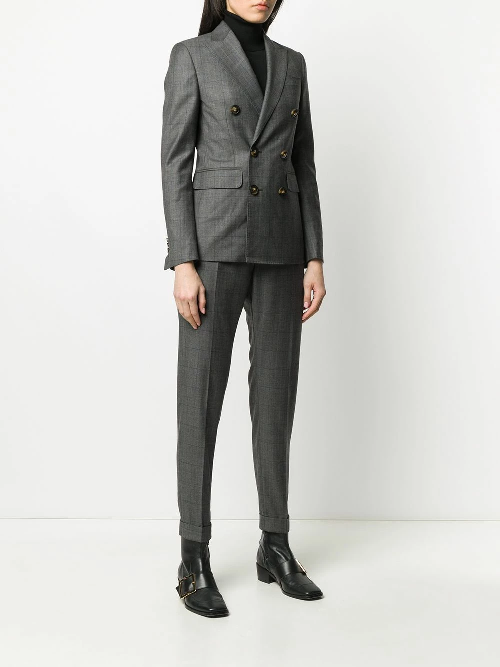 Blazer à boutonnière croisée Dsquared2 avec revers pointus, manches longues, poignets boutonnés, poches devant passepoilées, boutonnière croisée sur le devant, poches devant à rabat, fente arrière et carreaux.
