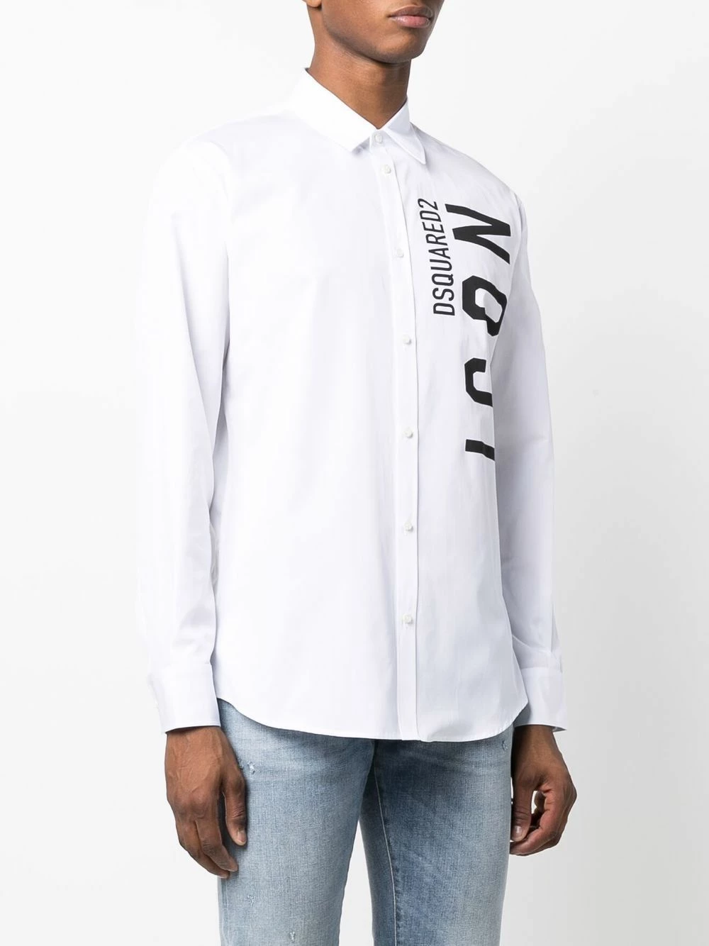 Logo imprimé sur le côté, col classique, boutonnière sur le devant, manches longues, manches à poignets boutonnés. Couleur : blanc. Matière : coton.