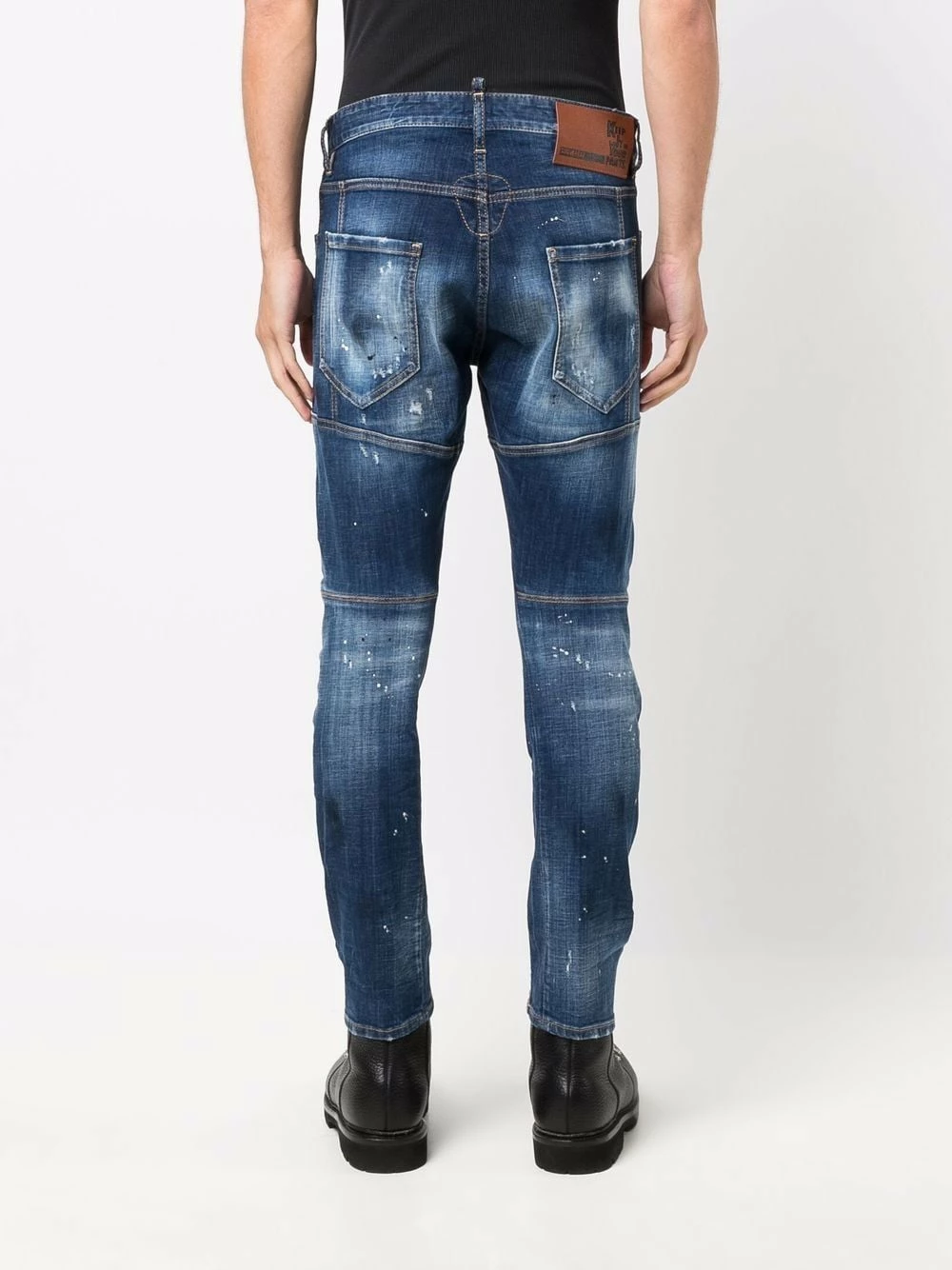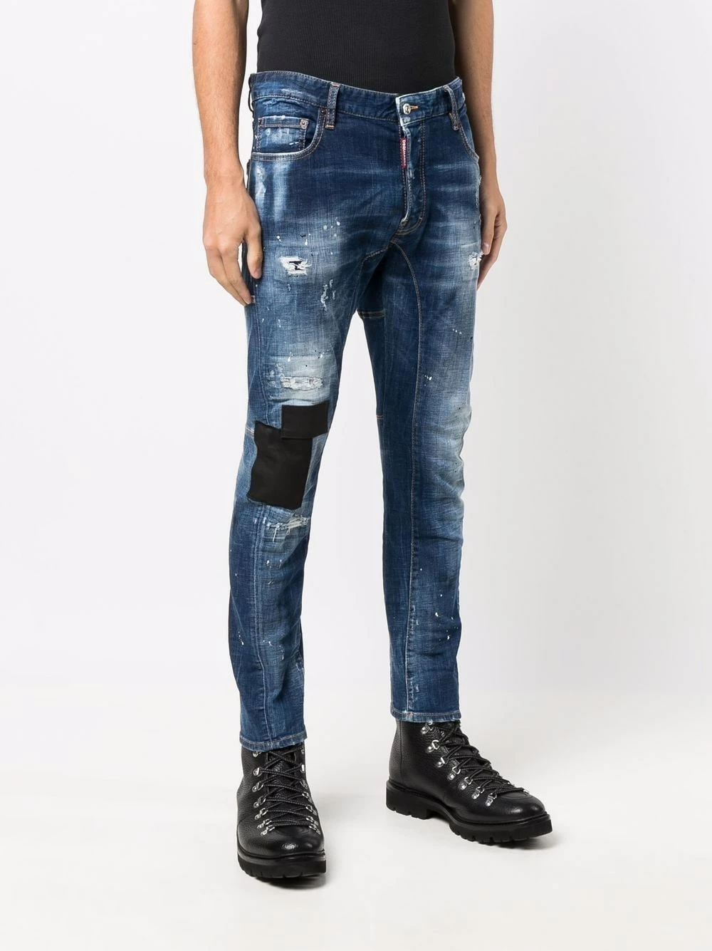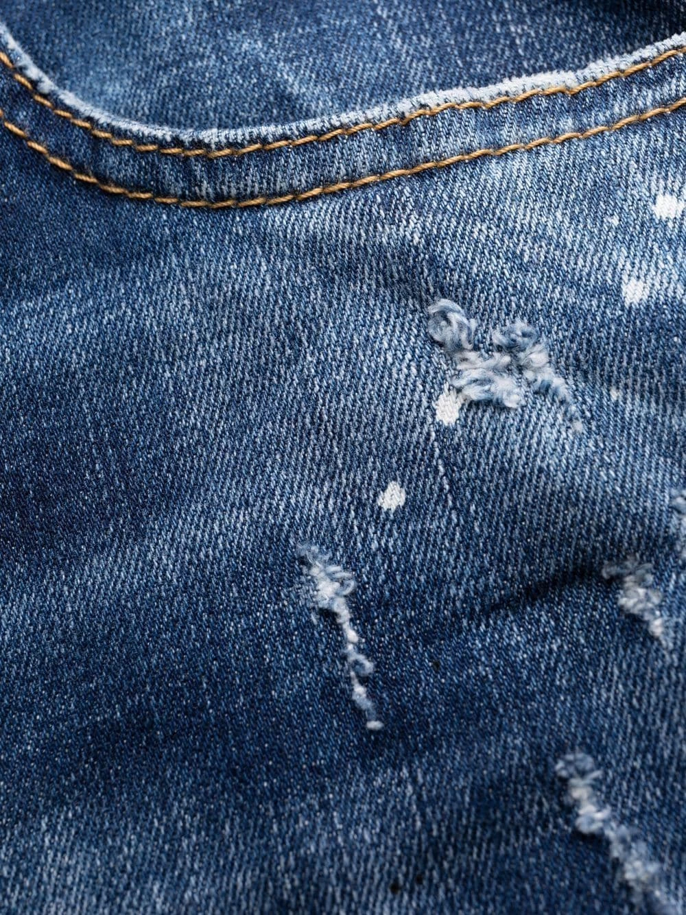 Effet usé, coupe skinny, fermeture boutonnée, passants de ceinture, cinq poches classiques. Couleur : bleu. Matière : coton mélangé.