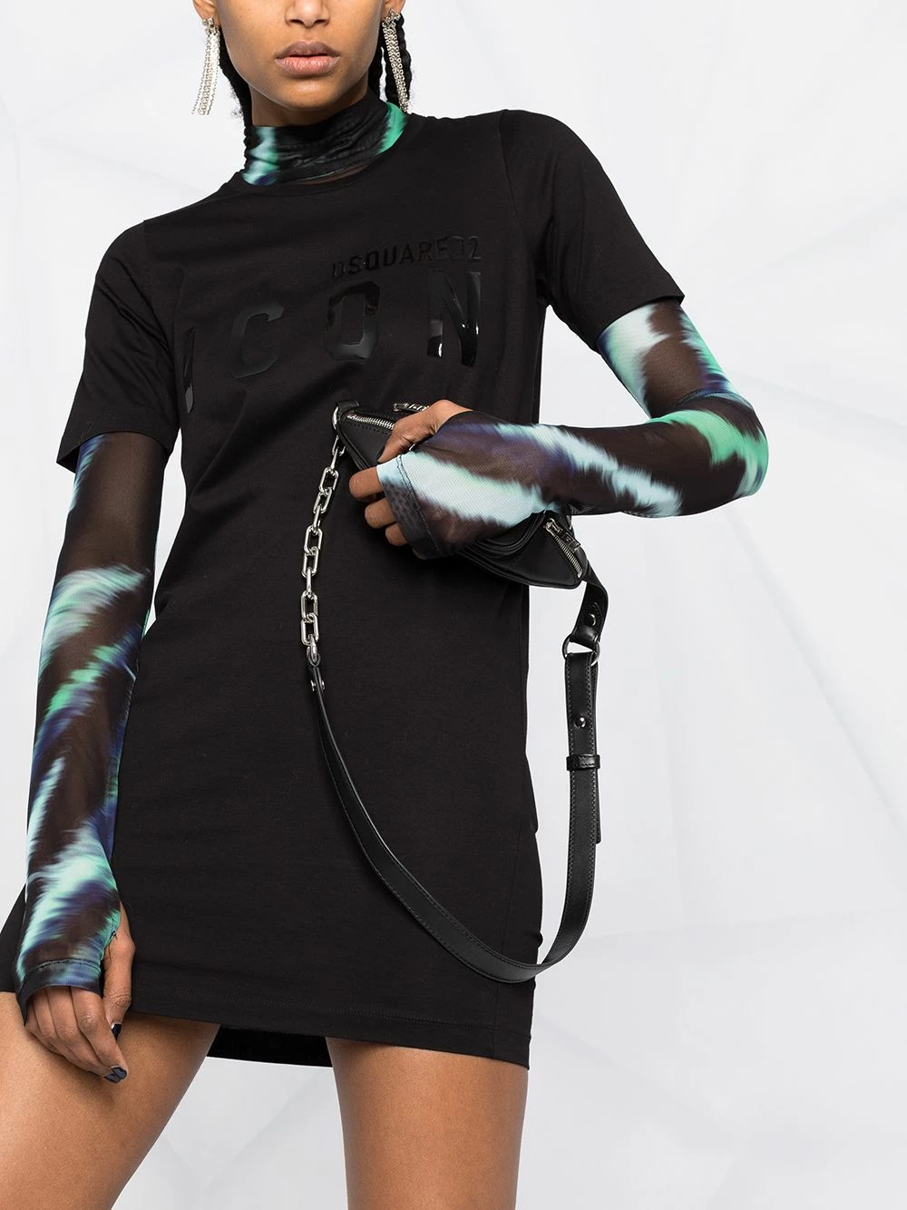 Encolure ronde, manches courtes, design moulant, coupe courte. Couleur : Noir. Matière : coton.