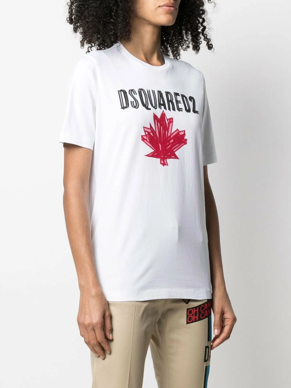 Logo imprimé sur le devant, encolure ras du cou, manches courtes, ourlet droit. Couleur : blanc. Matière : coton.