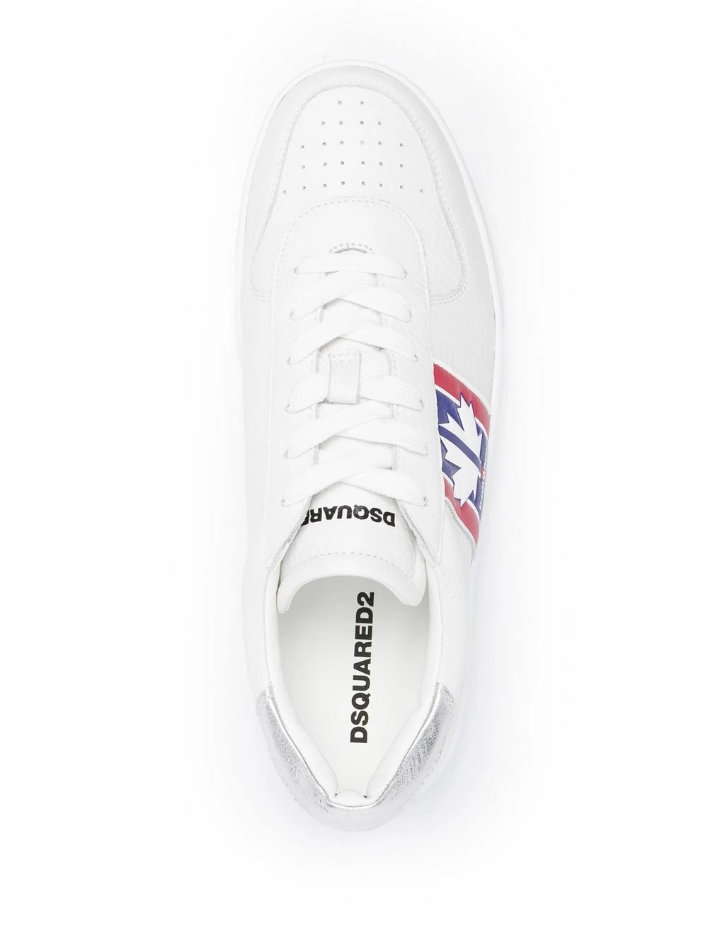 Logo embossé sur le côté, détail de rayure latérale, languette à logo imprimé, fermeture à lacer sur le devant, semelle plate en caoutchouc. Matière : cuir.