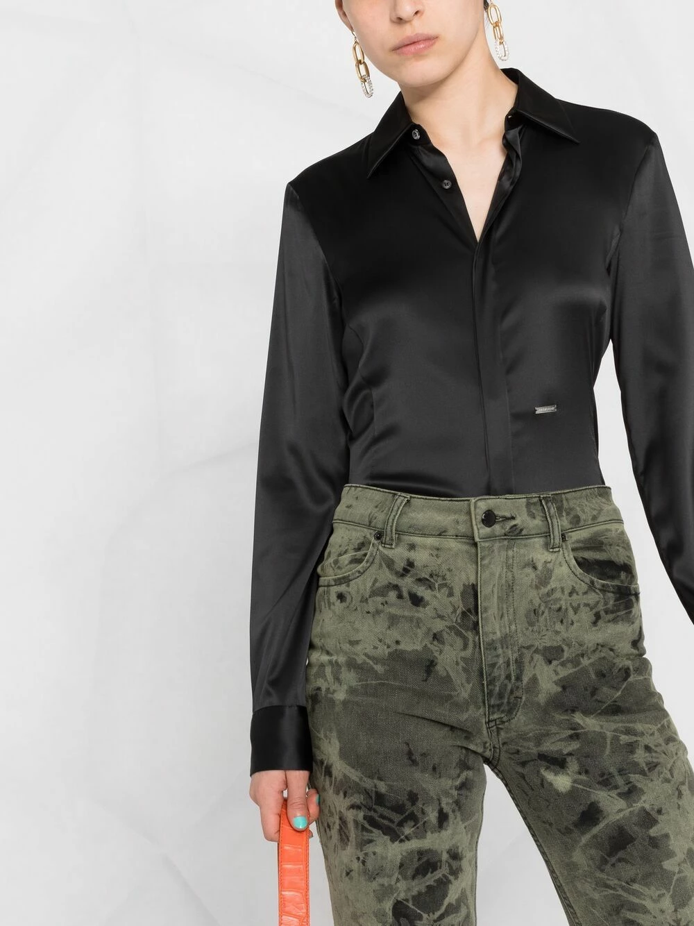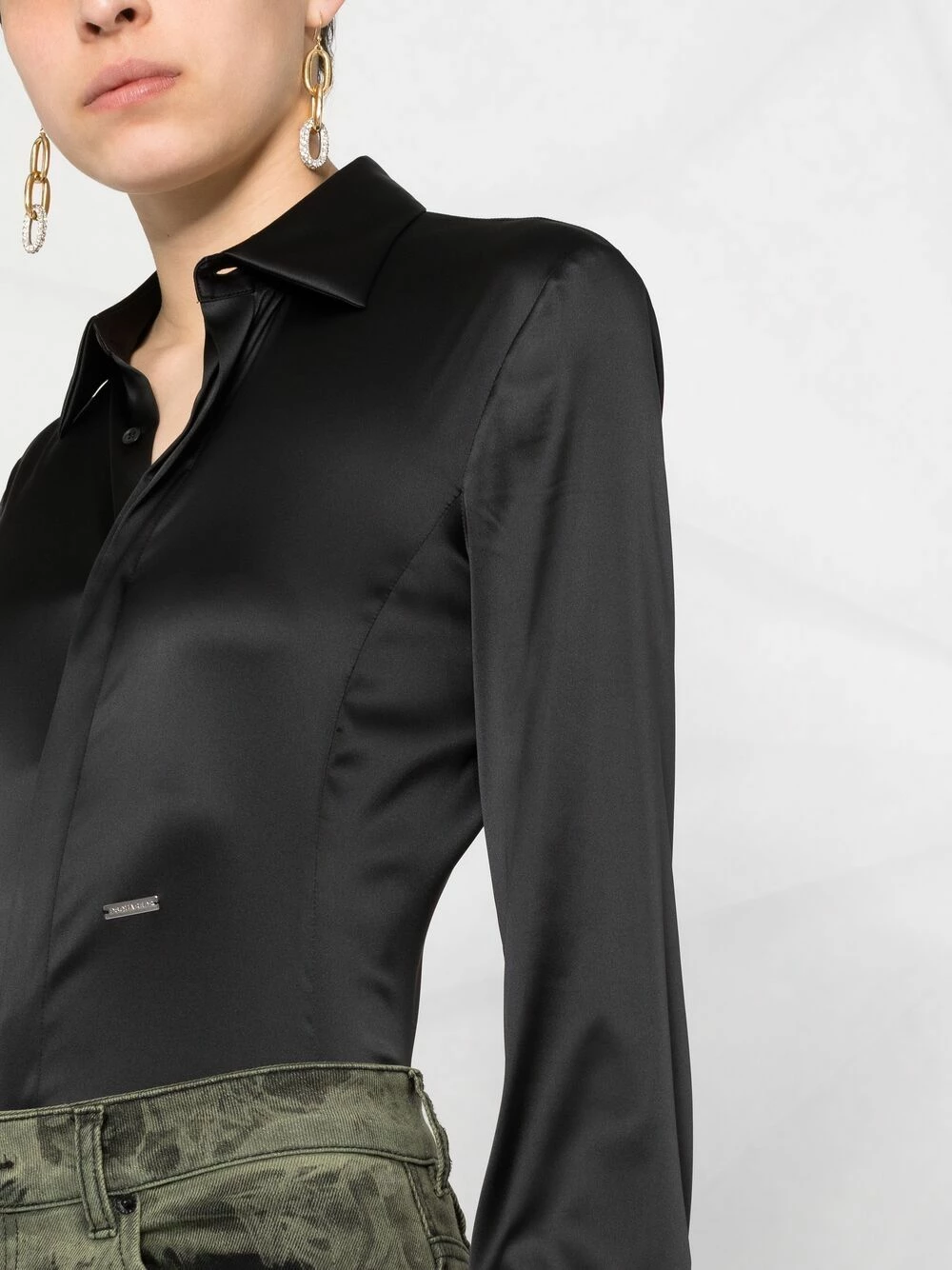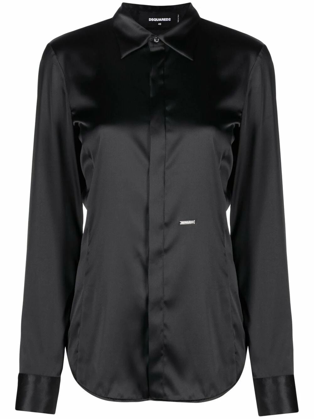 Plaque logo, col classique, manches longues, boutonnière dissimulée sur le devant, ourlet incurvé. Couleur : noir.