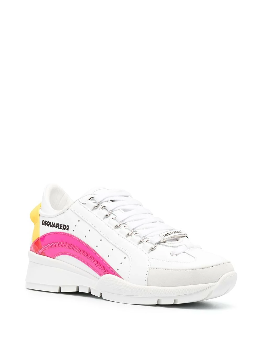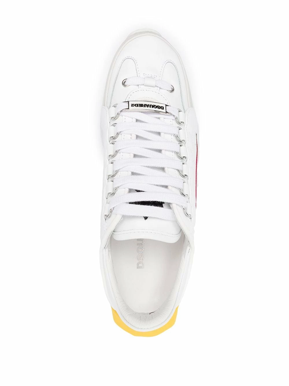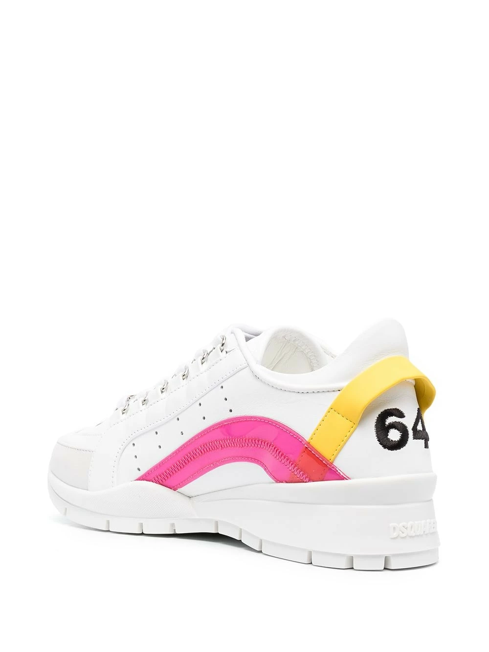 Languette à logo imprimé, fermeture à lacer sur le devant, bout rond, logo imprimé sur le côté, imprimé graphique, contrefort à logo, semelle plate en caoutchouc. Couleur : blanc. Matière : cuir.
