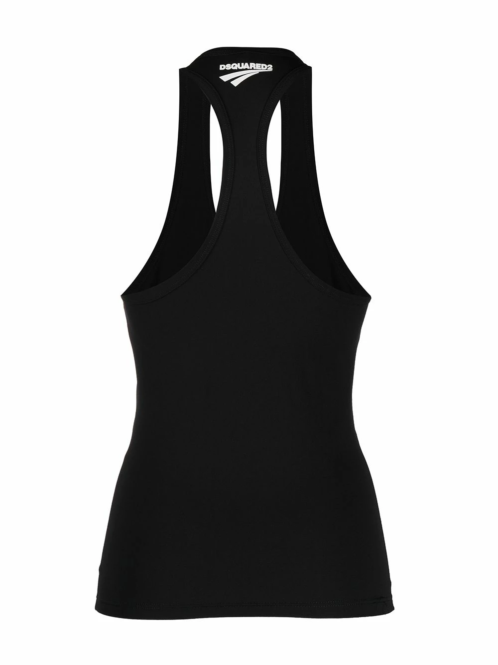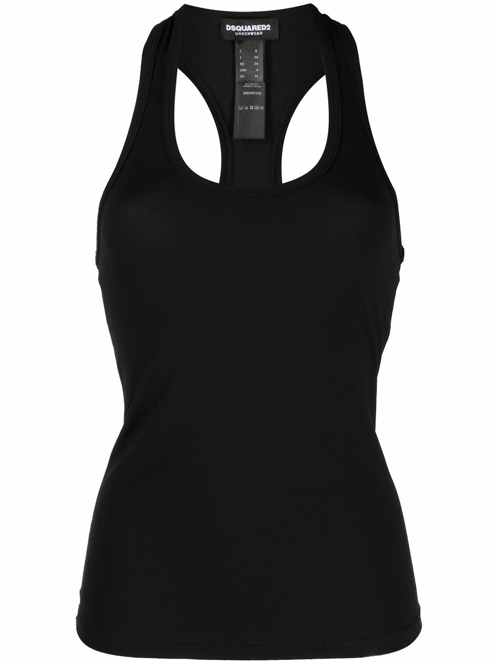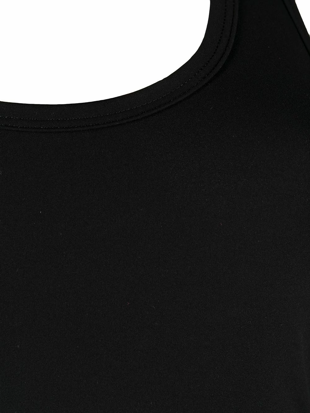 Coupe stretch, encolure ronde, design sans manches, dos nageur, ourlet droit. Couleur : noir.