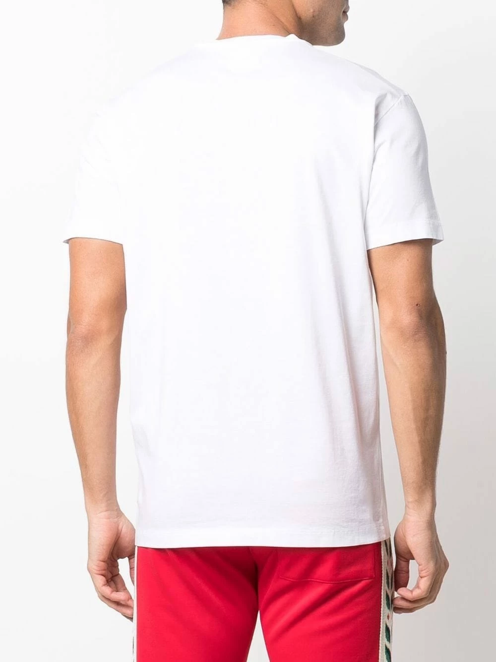 Logo imprimé sur le devant, encolure ras du cou, manches courtes, ourlet droit. Couleur : blanc. Matière : coton.