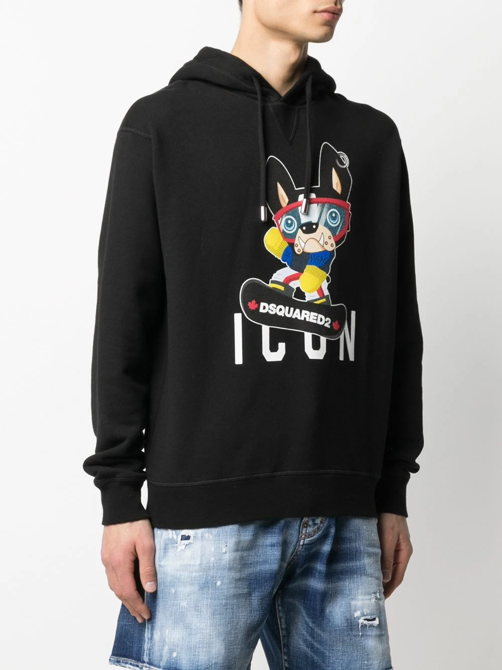 Imprimé graphique, capuche à lien de resserrage, manches longues, ourlet droit. Matière : coton.