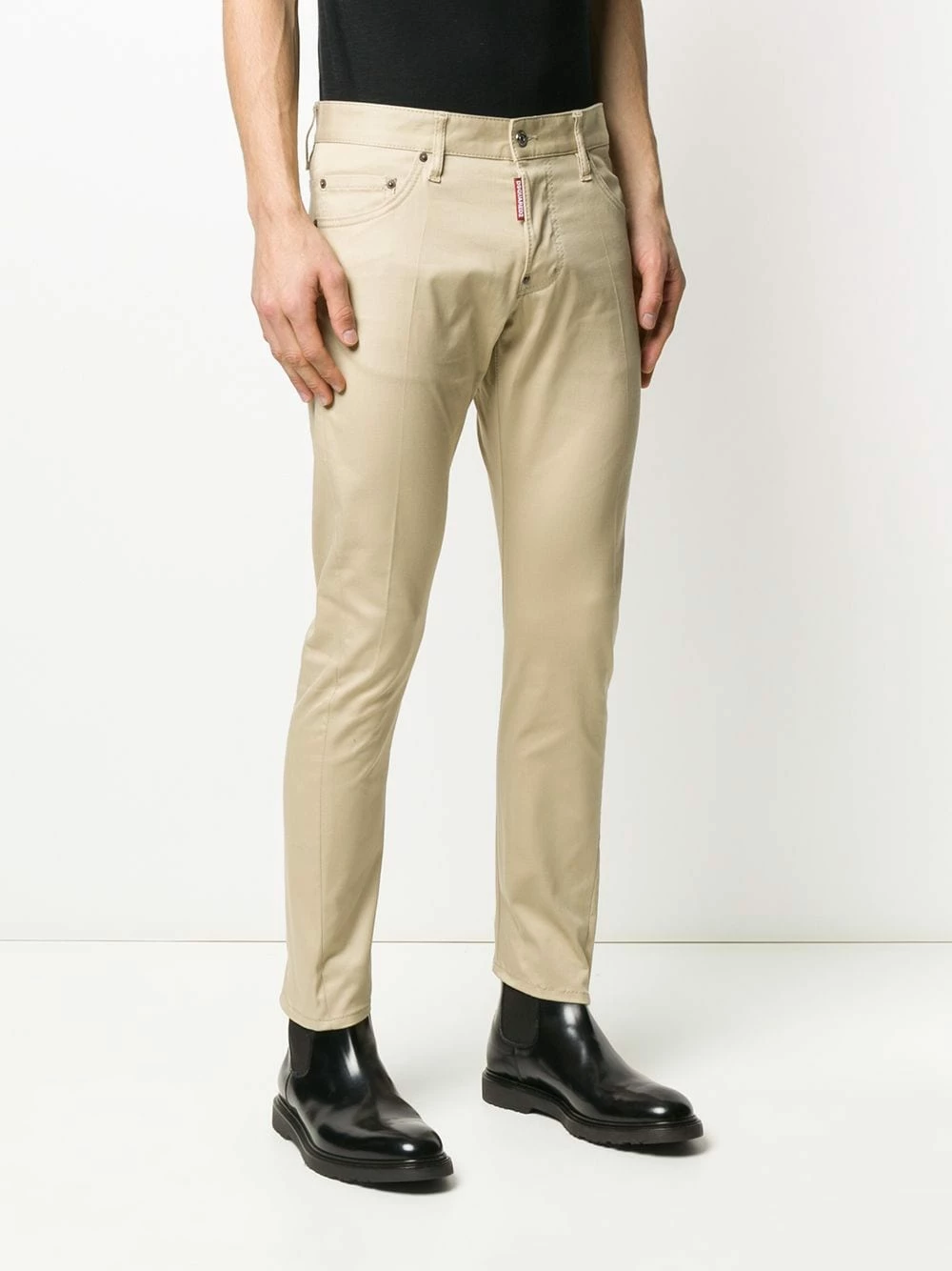 Pantalon chino slim Dsquared2 avec étiquette logo, passants de ceinture à la taille, bouton et zip, coupe classique cinq poches et longueur classique.