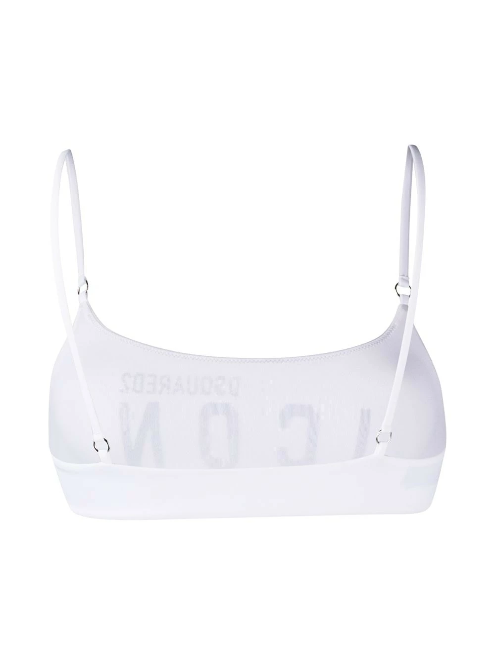 Logo imprimé à la poitrine, fines bretelles, encolure arrondie. Veillez à essayer les maillot de bain par-dessus vos propres sous-vêtements.