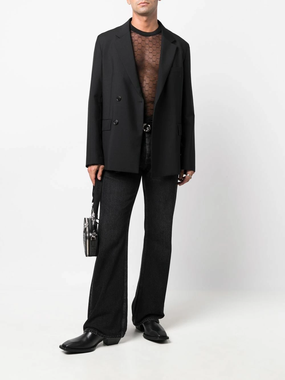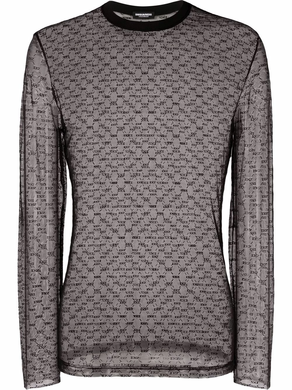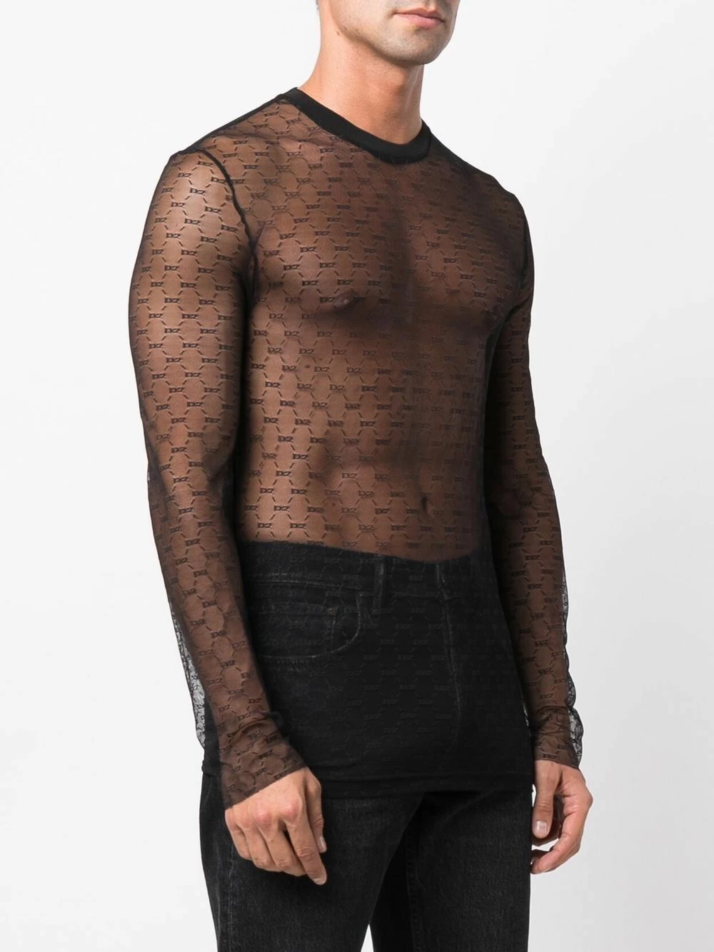 Logo intarsia, effet de transparence, encolure ras du cou, manches longues, ourlet droit. Couleur : noir.