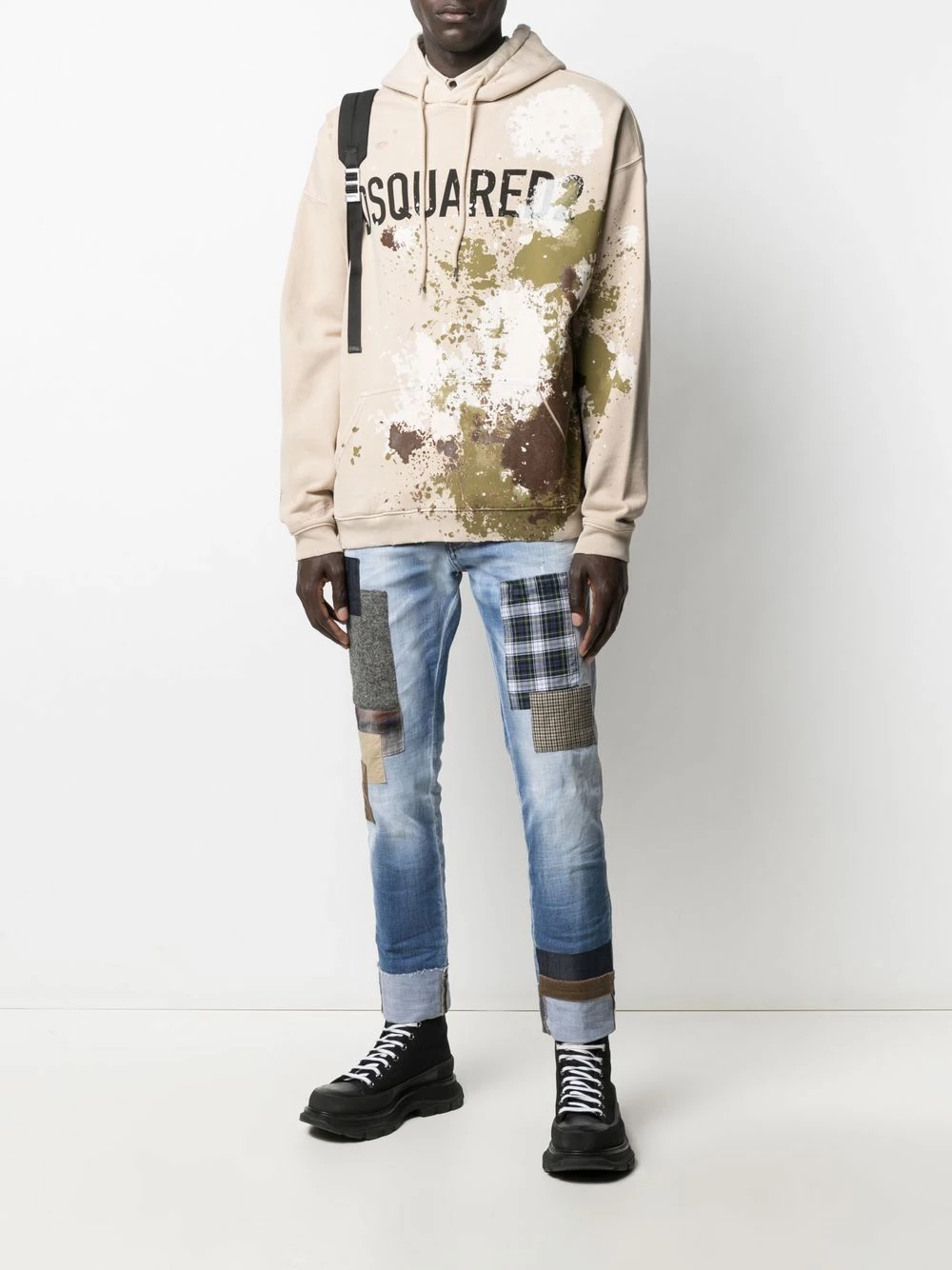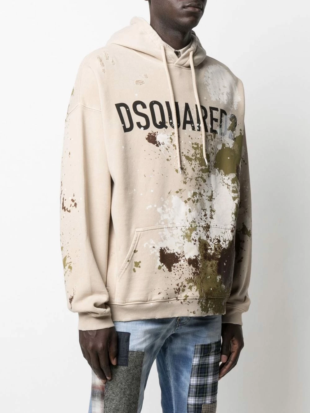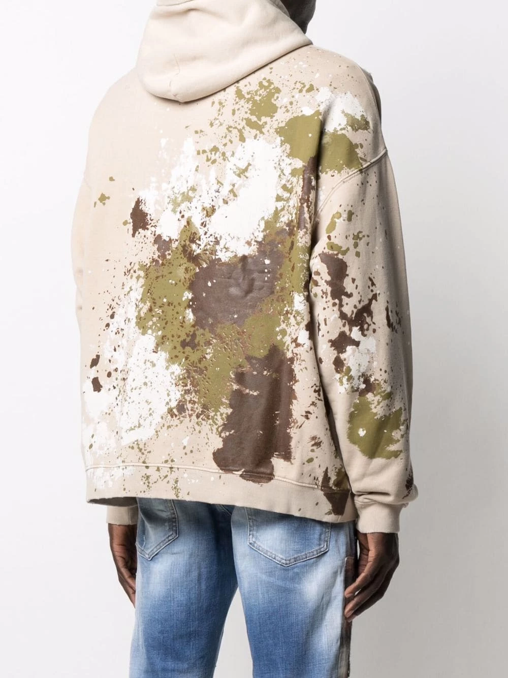 Logo imprimé à la poitrine, effet taches de peinture, capuche souple à lien de resserrage, manches longues. Matière : coton.