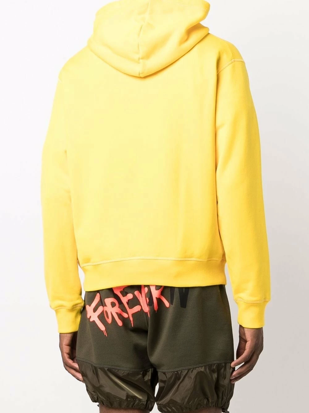 Logo imprimé à la poitrine, capuche à lien de resserrage, manches longues, ourlet droit. Matière : coton.