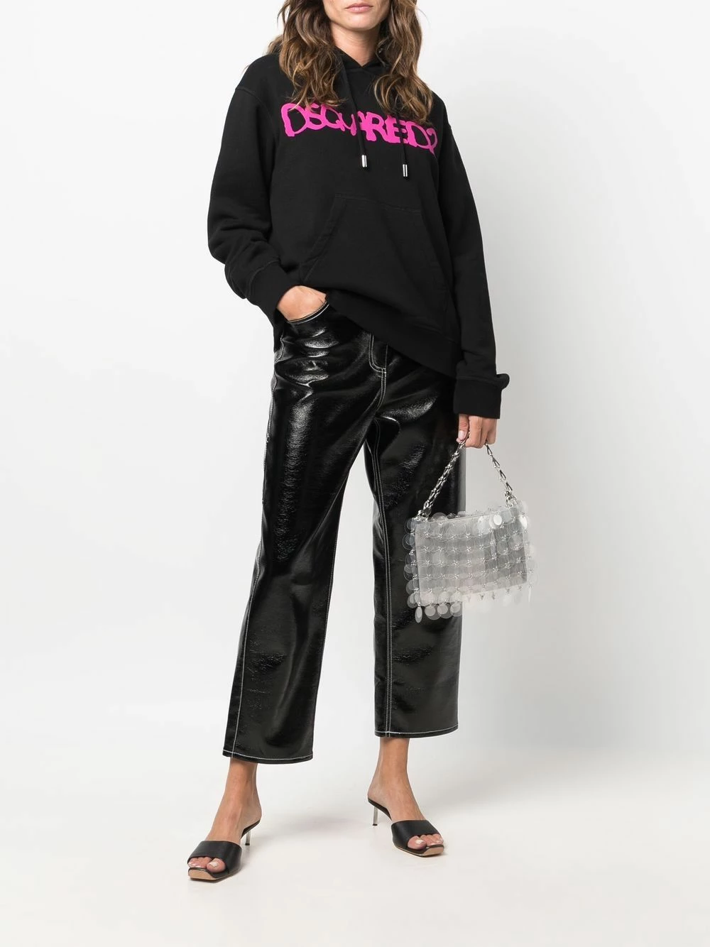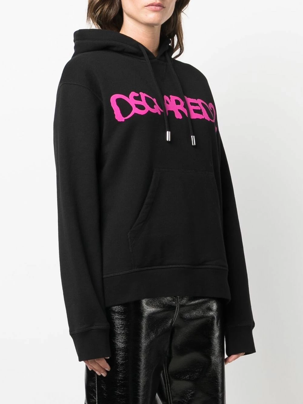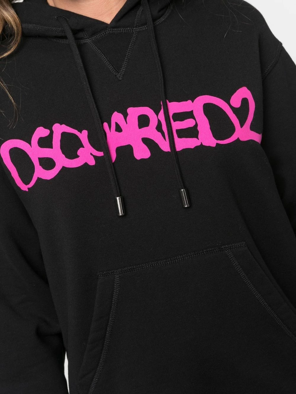 Détail nervuré, logo imprimé sur le devant, capuche à lien de resserrage, manches longues, poche plaquée. Couleur : noir. Matière : coton.