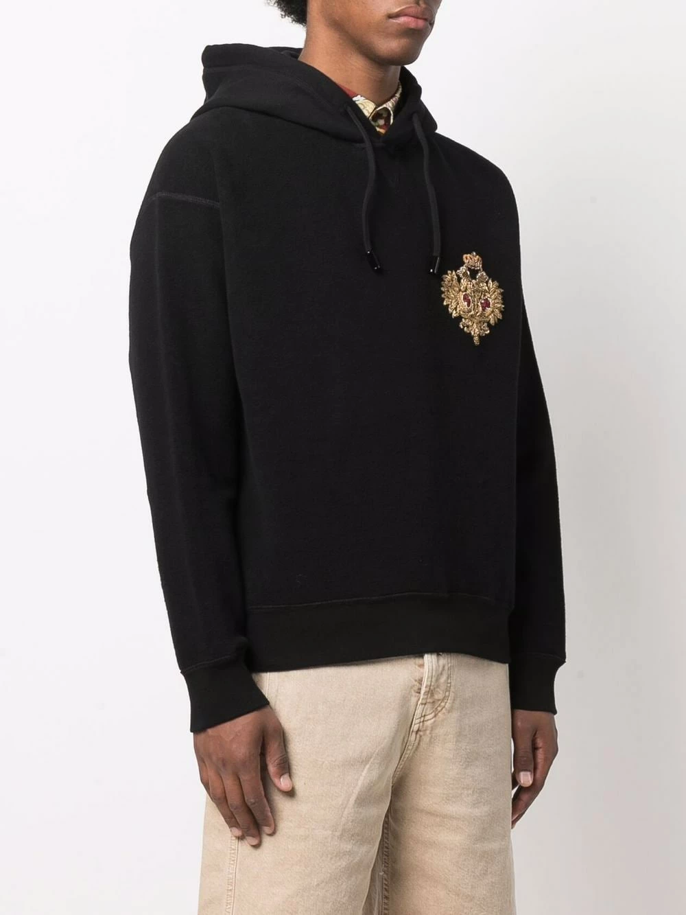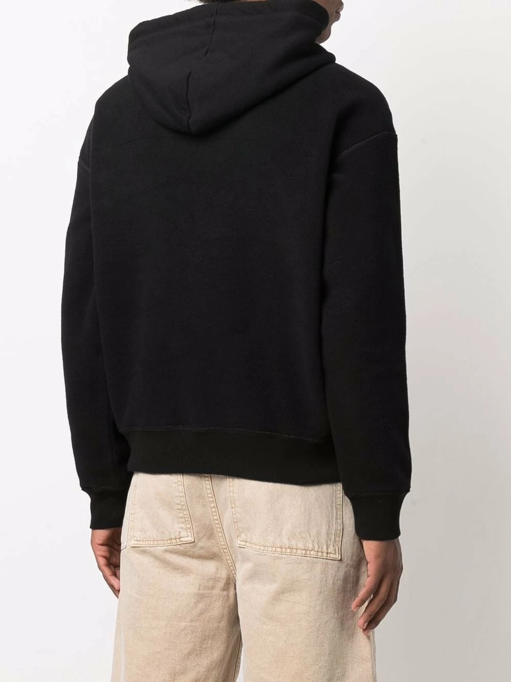 Motif brodé, capuche à lien de resserrage, manches longues, ourlet droit. Couleur : noir. Matière : coton.