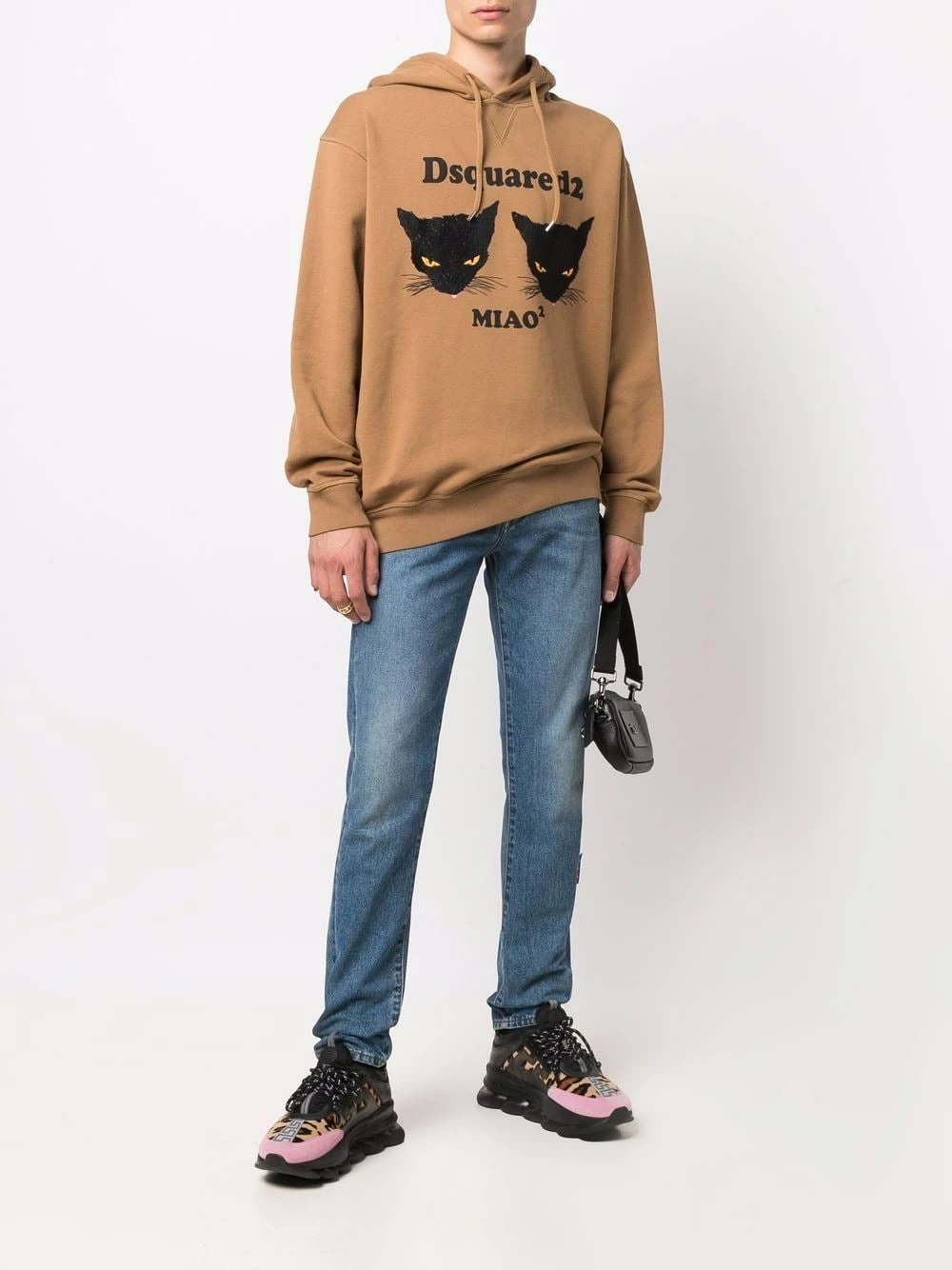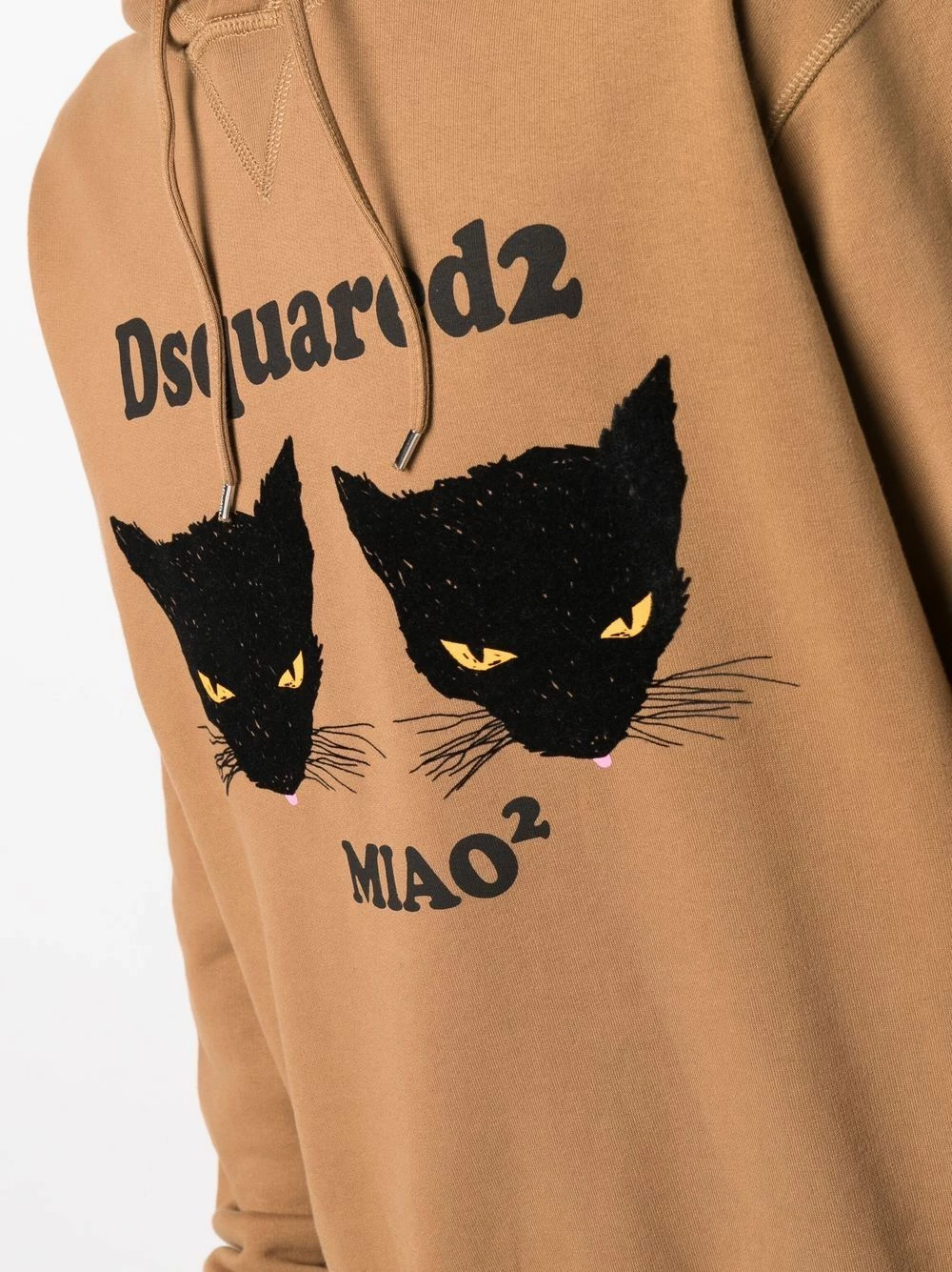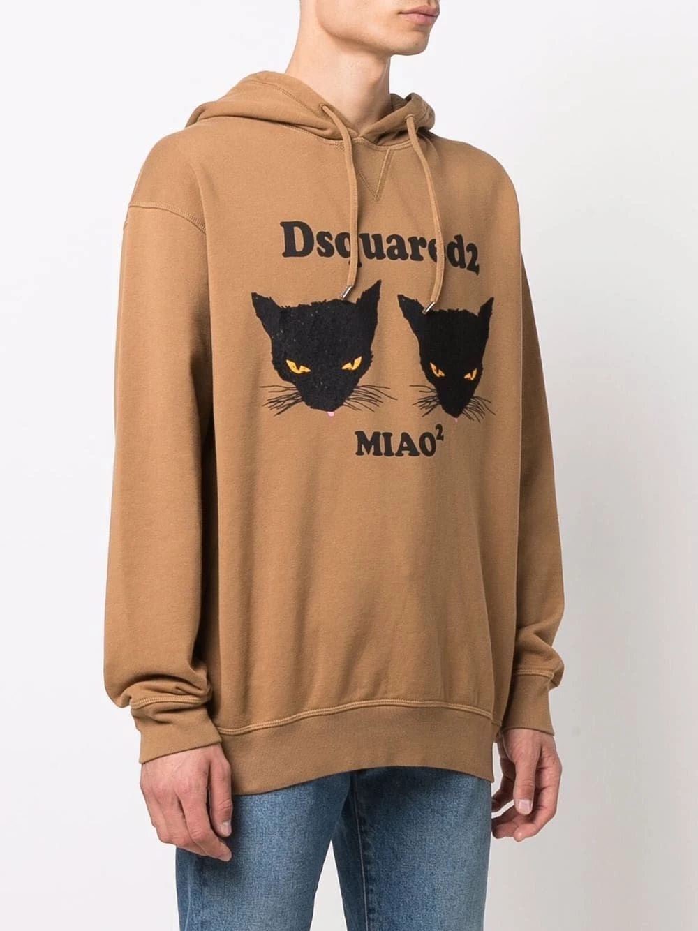 Marron, coton, imprimé animalier, logo imprimé sur le devant, slogan imprimé sur l’avant, capuche à lien de resserrage, effet d’épaules descendues, manches longues, ourlet droit.