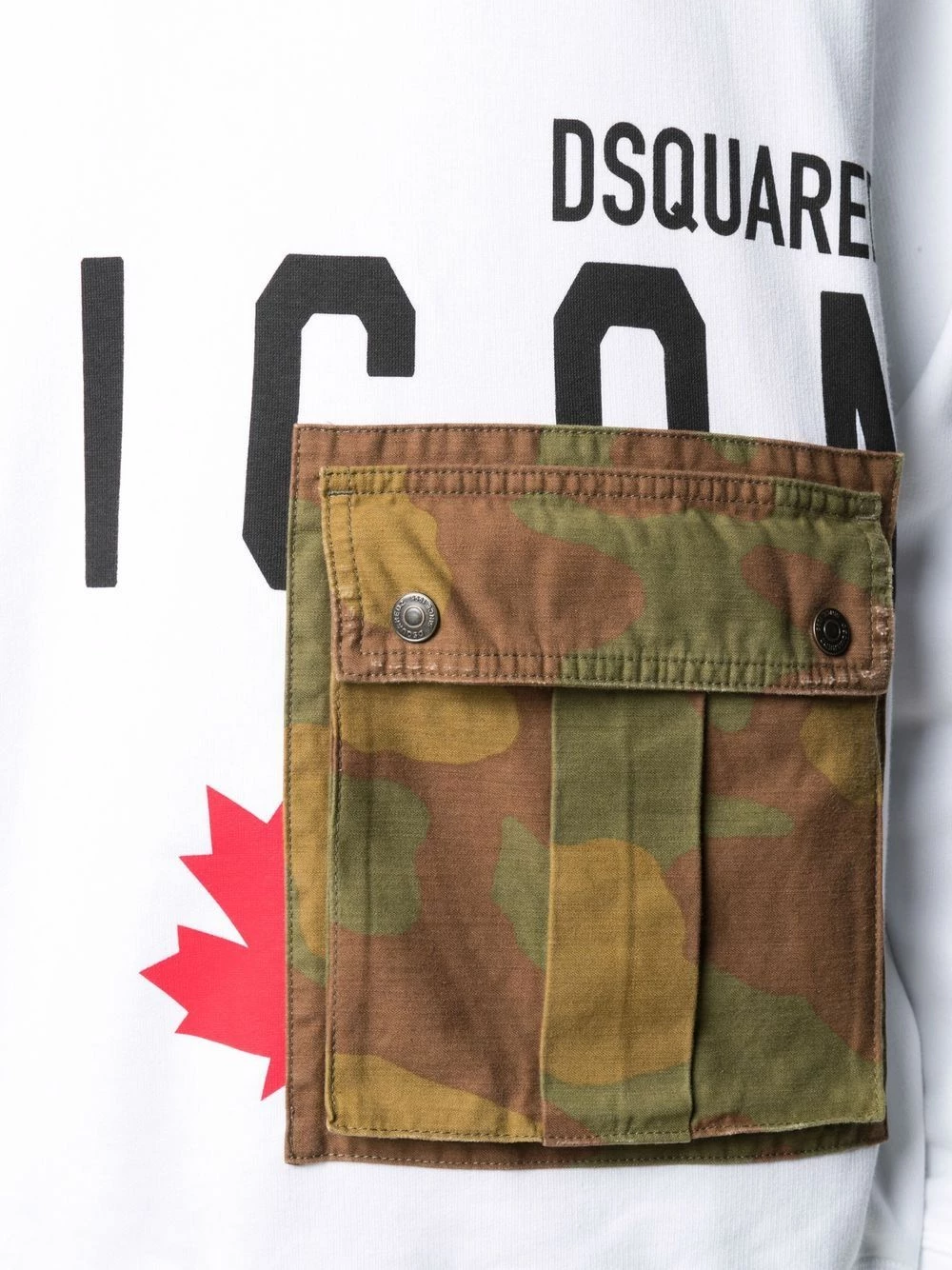 Détail nervuré, motif Icon signature, imprimé camouflage, capuche classique, effet d’épaules descendues, manches longues, ourlet droit. Couleur : blanc. Matière : coton.