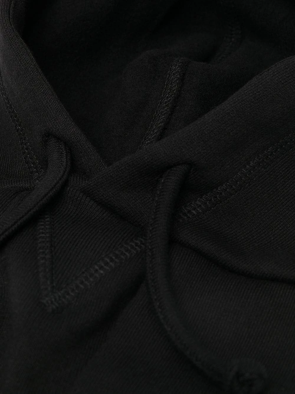 Capuche à lien de resserrage, détail nervuré, logo imprimé à l’arrière. Matière : coton.