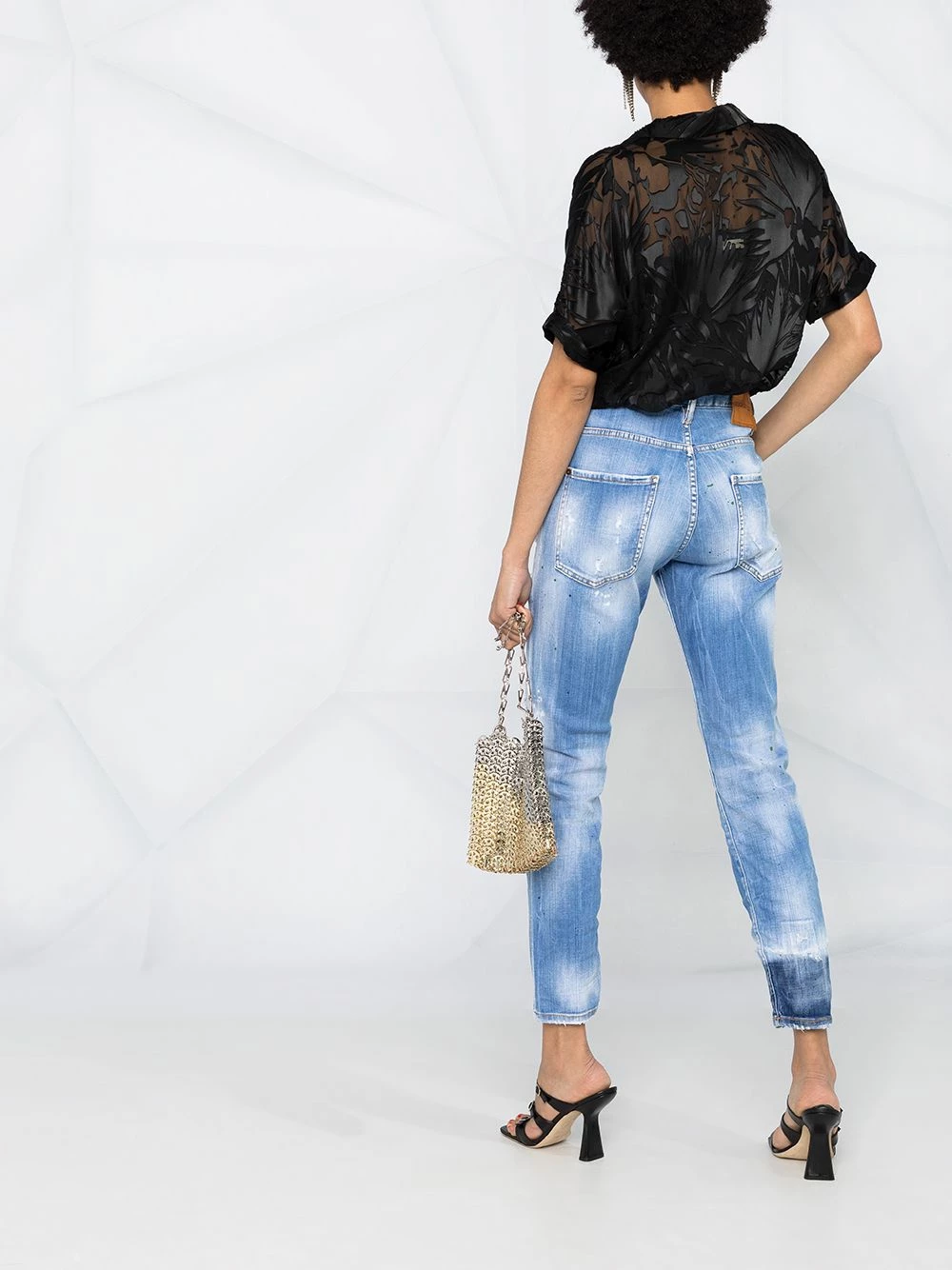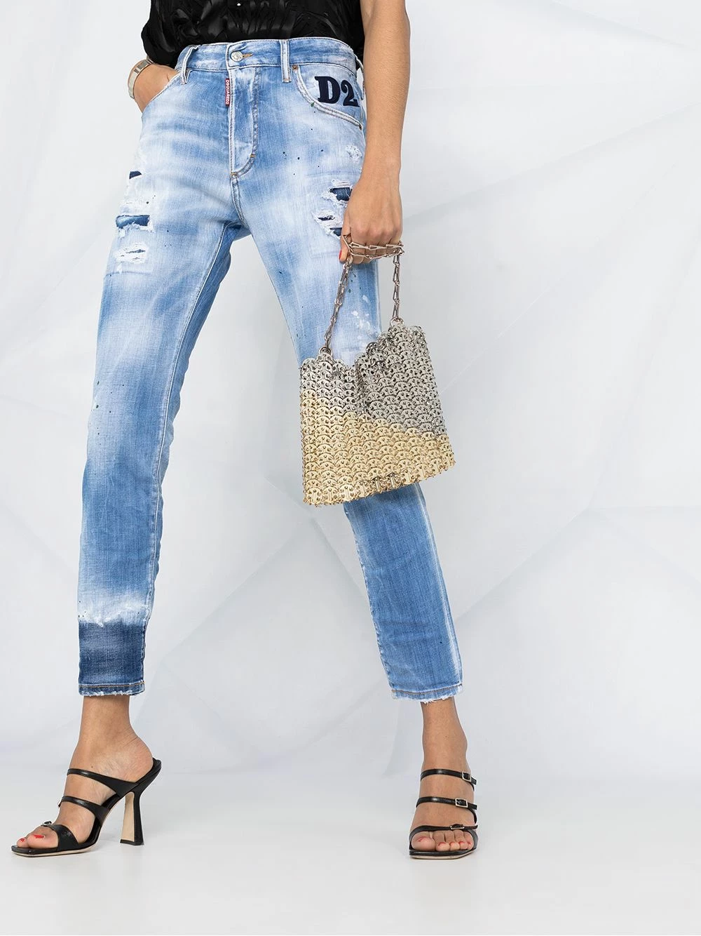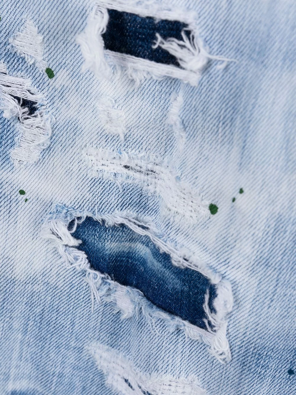 Effet délavé, effet usé, fermeture boutonnée, passants de ceinture, 5 poches classiques.