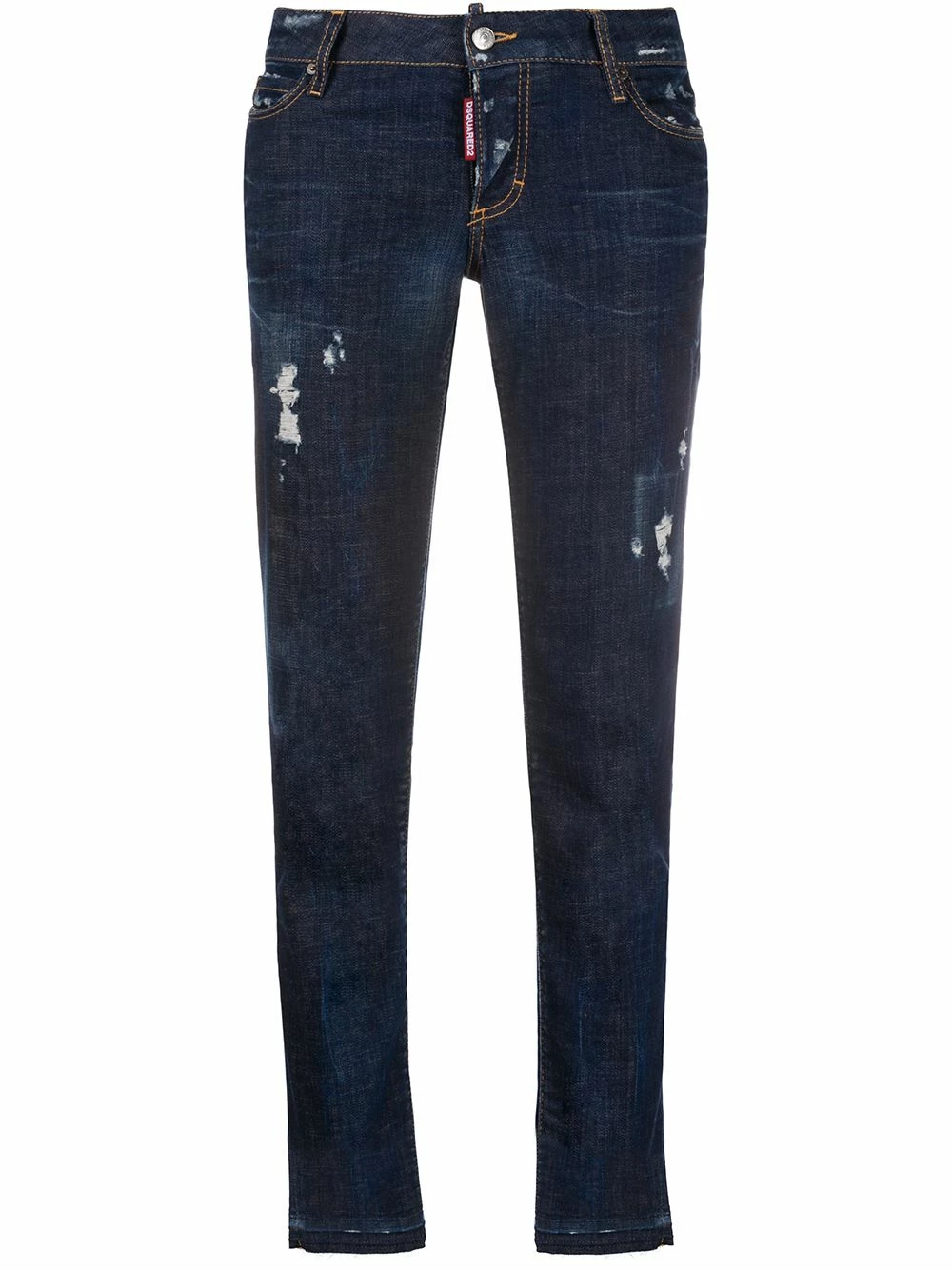 Jean crop à effet usé Dsquared2 avec passants de ceinture, effet usé, coupe classique cinq poches et longueur crop.