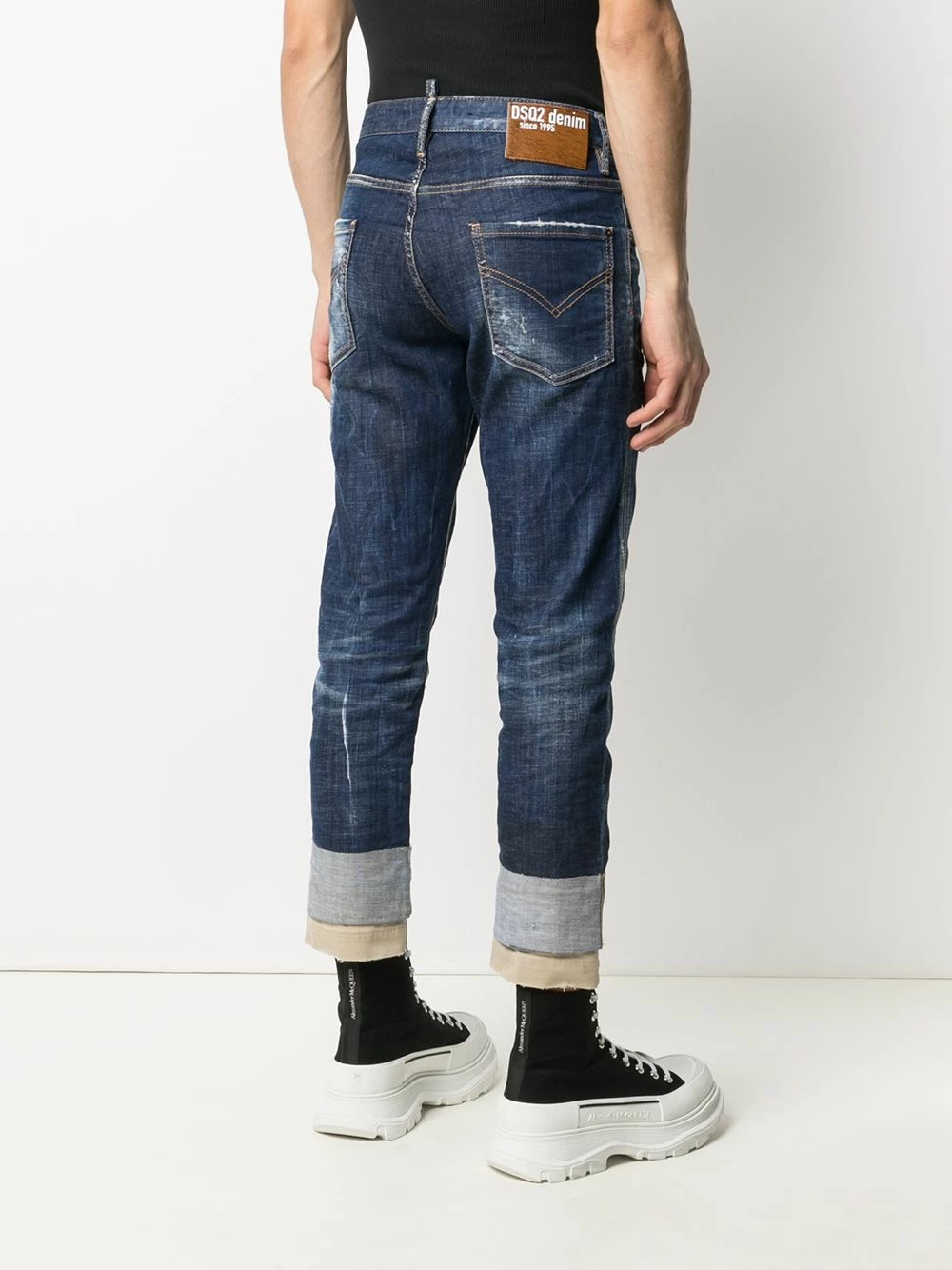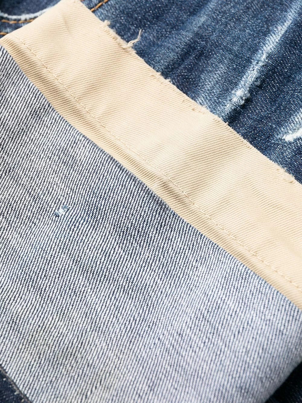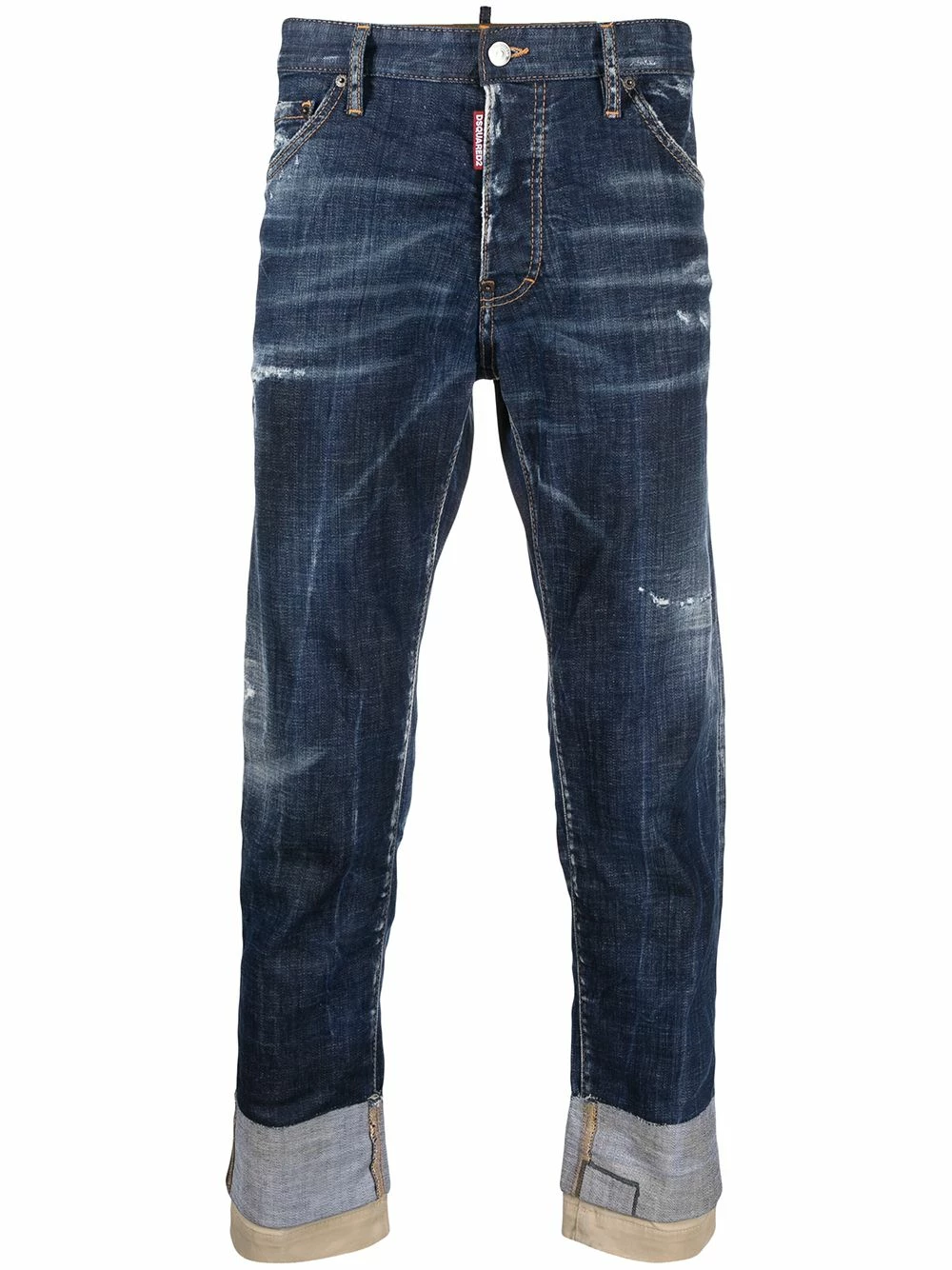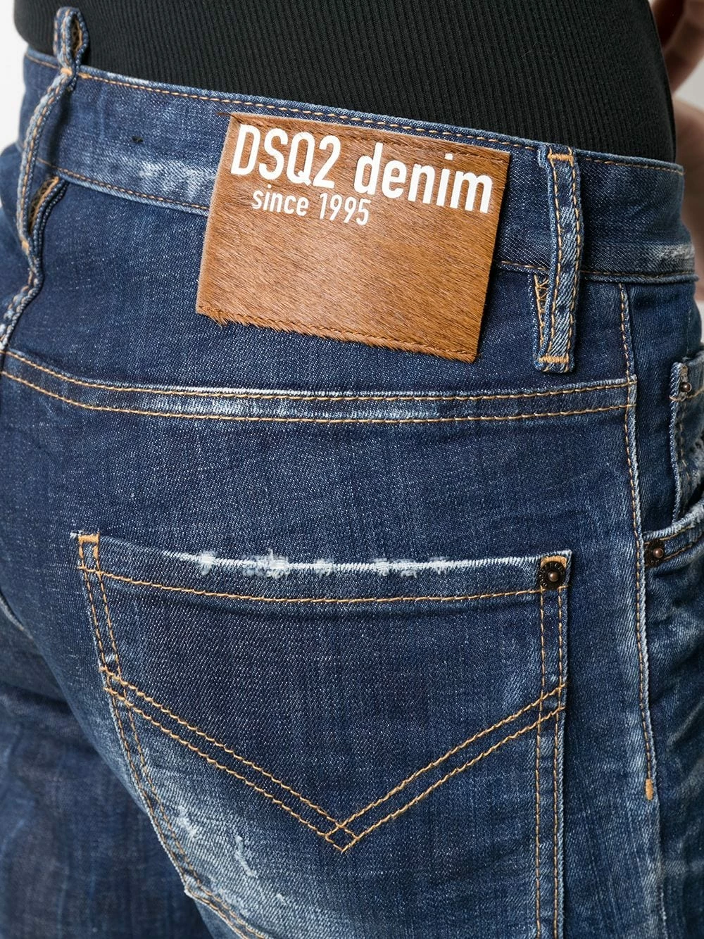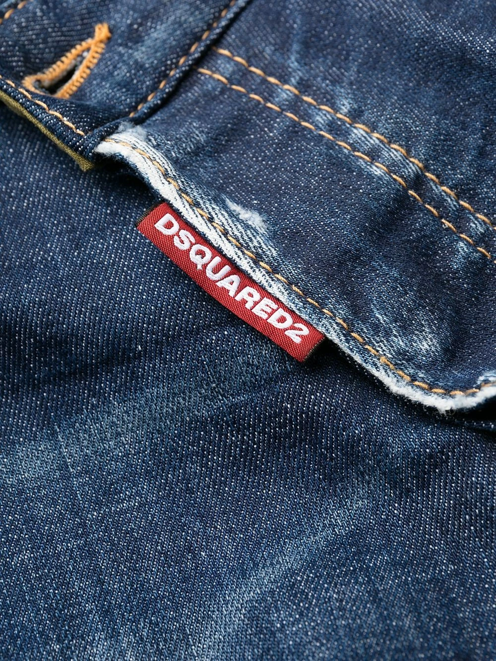 Effet usé, coupe courte, passants de ceinture, boutonnière sur le devant, 5 poches classiques. Couleur : Bleu.