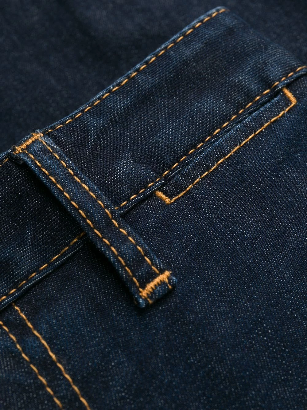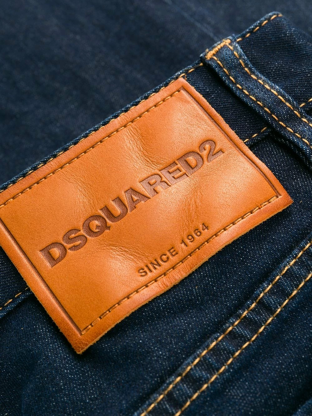 Jean droit Dalma Angel Dsquared2 avec bouton et zip, taille haute, étiquette en cuir à l’arrière, passants de ceinture à la taille, poches arrière plaquées et coupe droite.