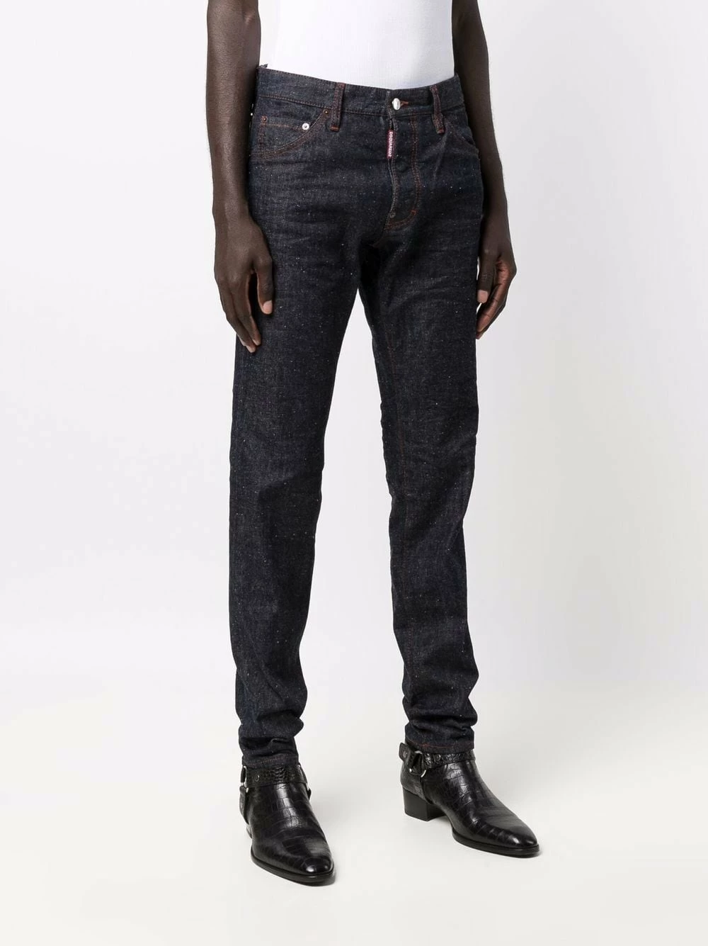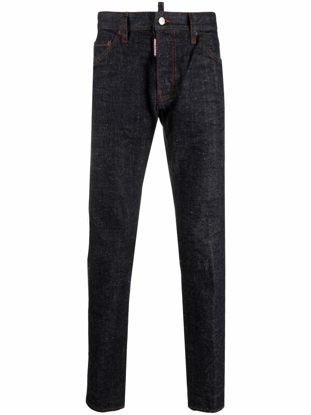 Patch logo sur l’arrière, logo imprimé à l’arrière, coutures contrastantes, taille mi-haute, fermeture boutonnée, passants de ceinture, cinq poches classiques, coupe fuselée.