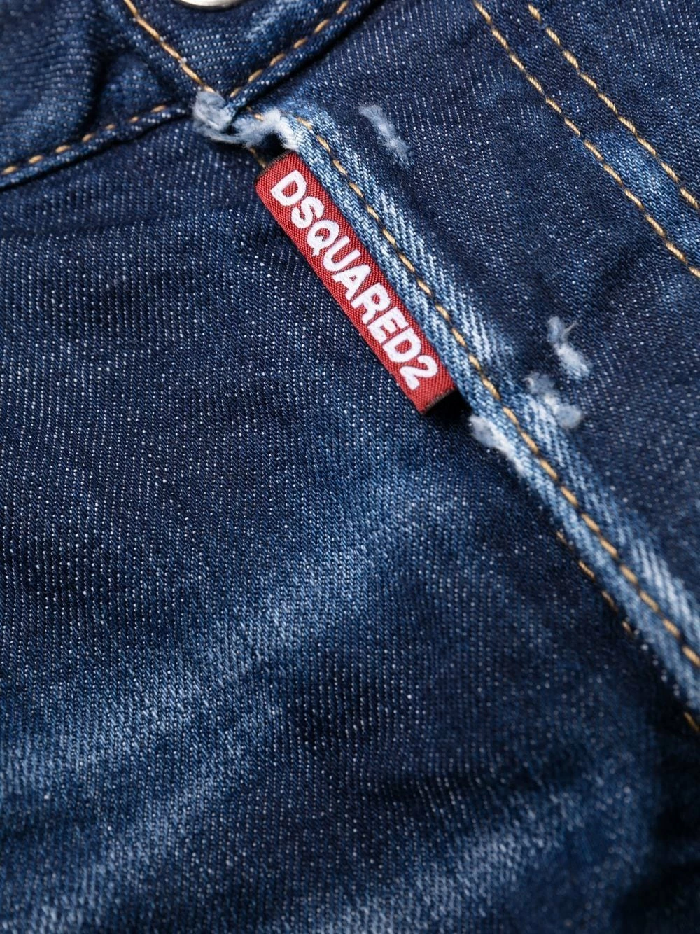 Passants de ceinture, finitions à effet usé, fermeture à zip et boutons sur le devant, cinq poches classiques, finitions à effet usé, finitions effilochées, coupe slim. Couleur : bleu.