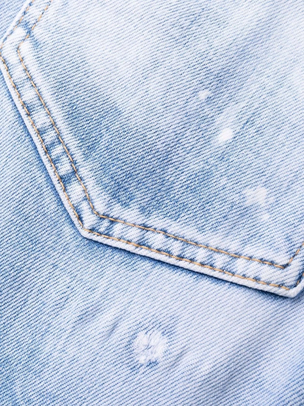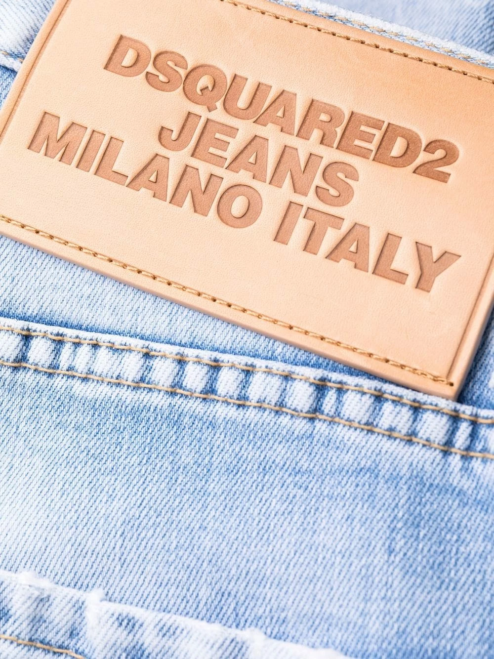 Effet délavé, effet usé, taille basse, passants de ceinture, fermeture boutonnée, cinq poches classiques, patch logo sur l’arrière, coupe slim.