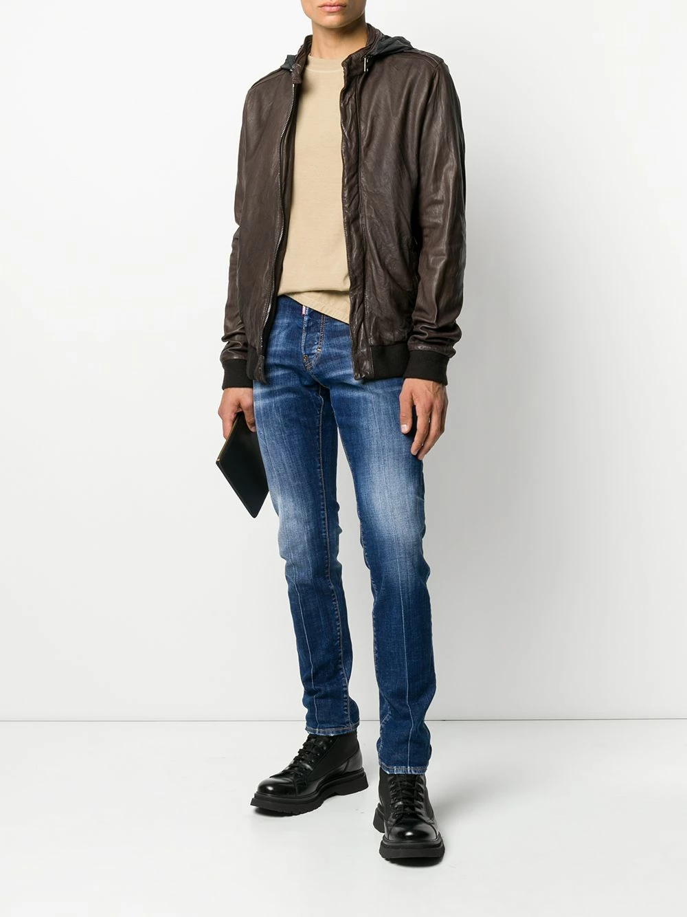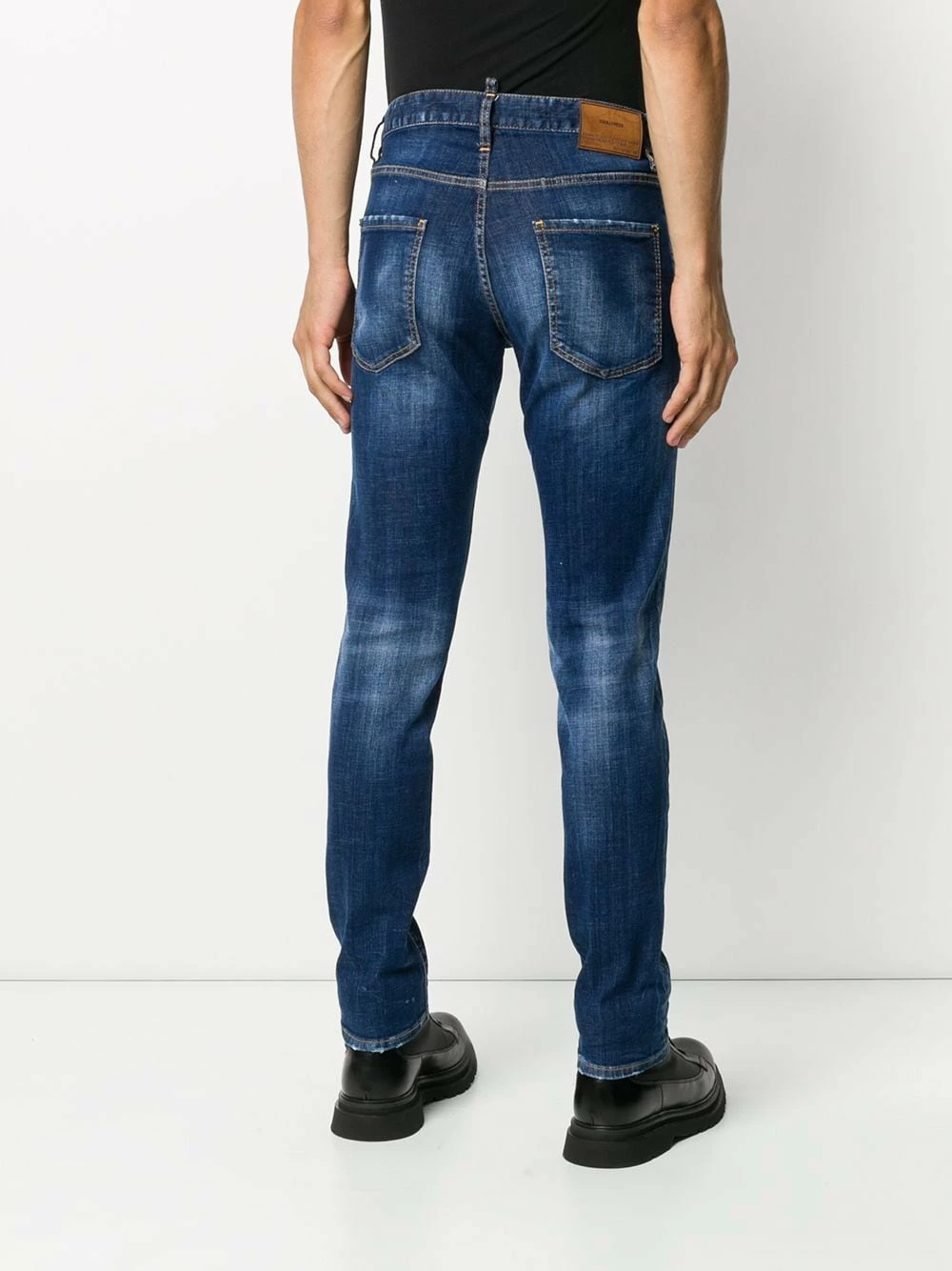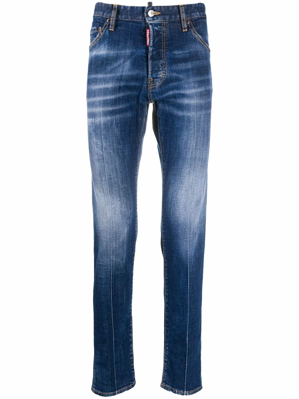 Passants de ceinture, patch logo sur l’arrière, 5 poches classiques, fermeture à zip et boutons sur le devant, coupe ajustée, effet délavé. Couleur : bleu.