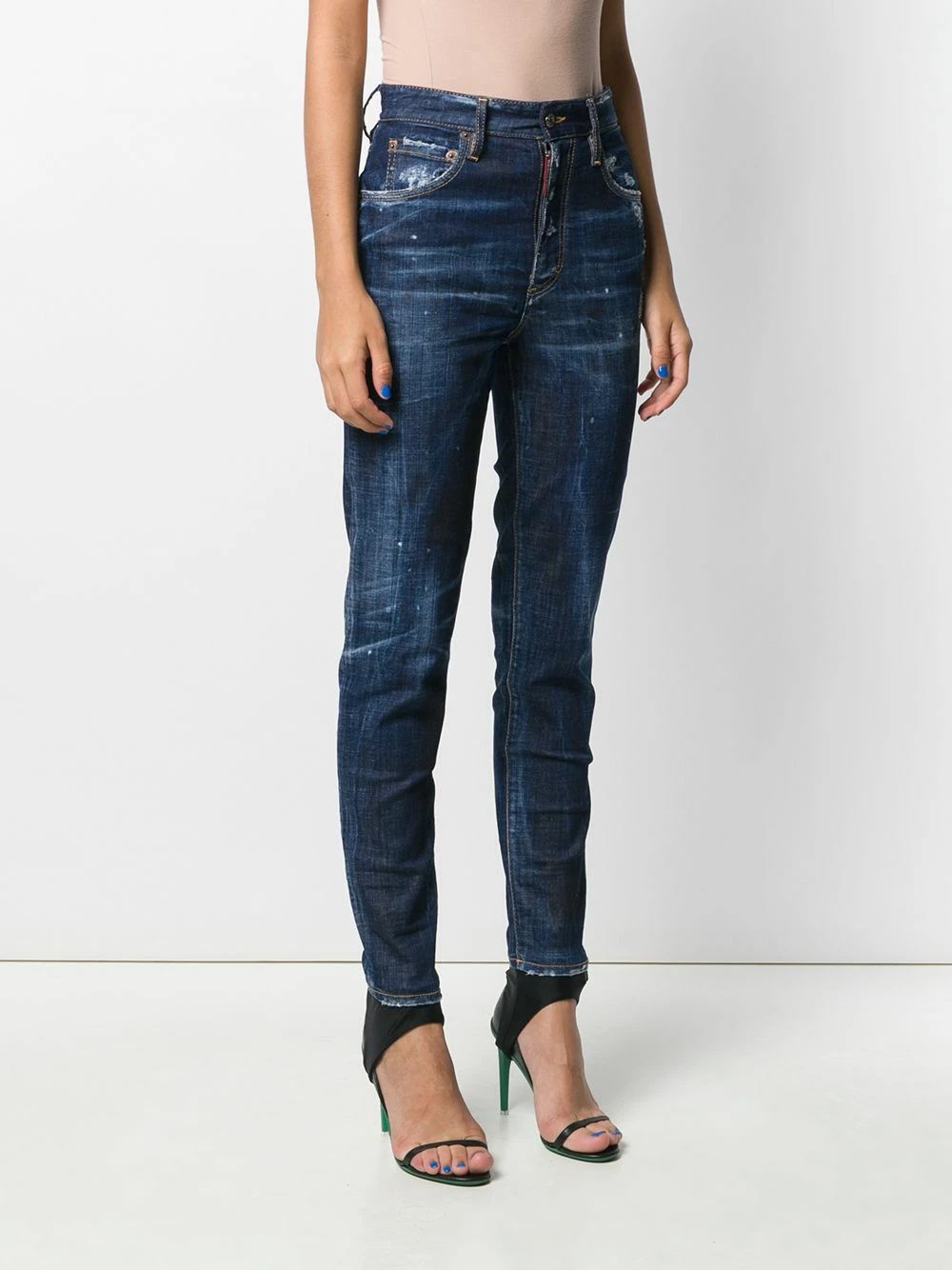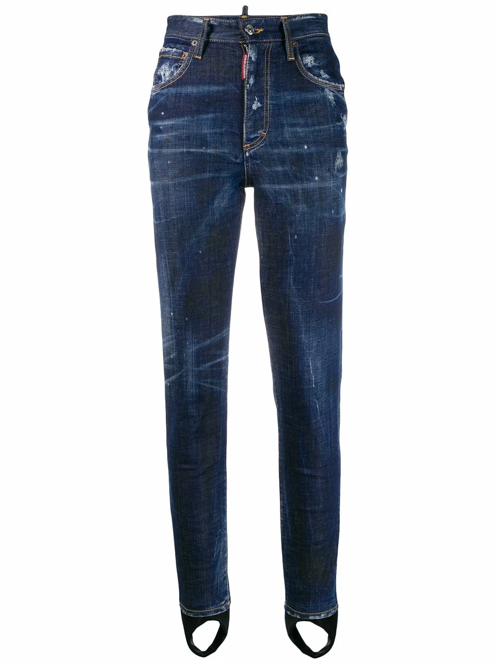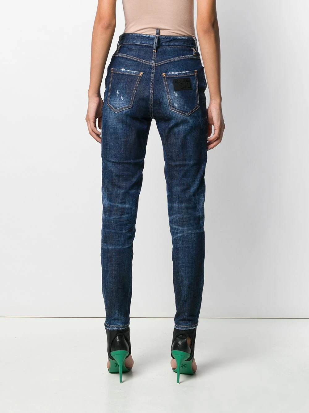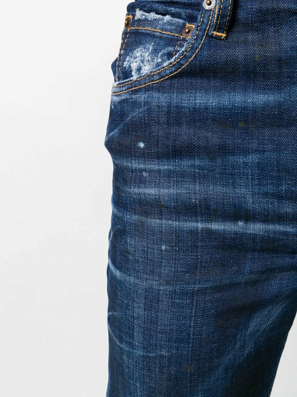 Jean slim à effet usé en coton Dsquared2 avec taille haute, passants de ceinture à la taille, patte de boutonnage sur le devant, coupe classique cinq poches et effet usé.