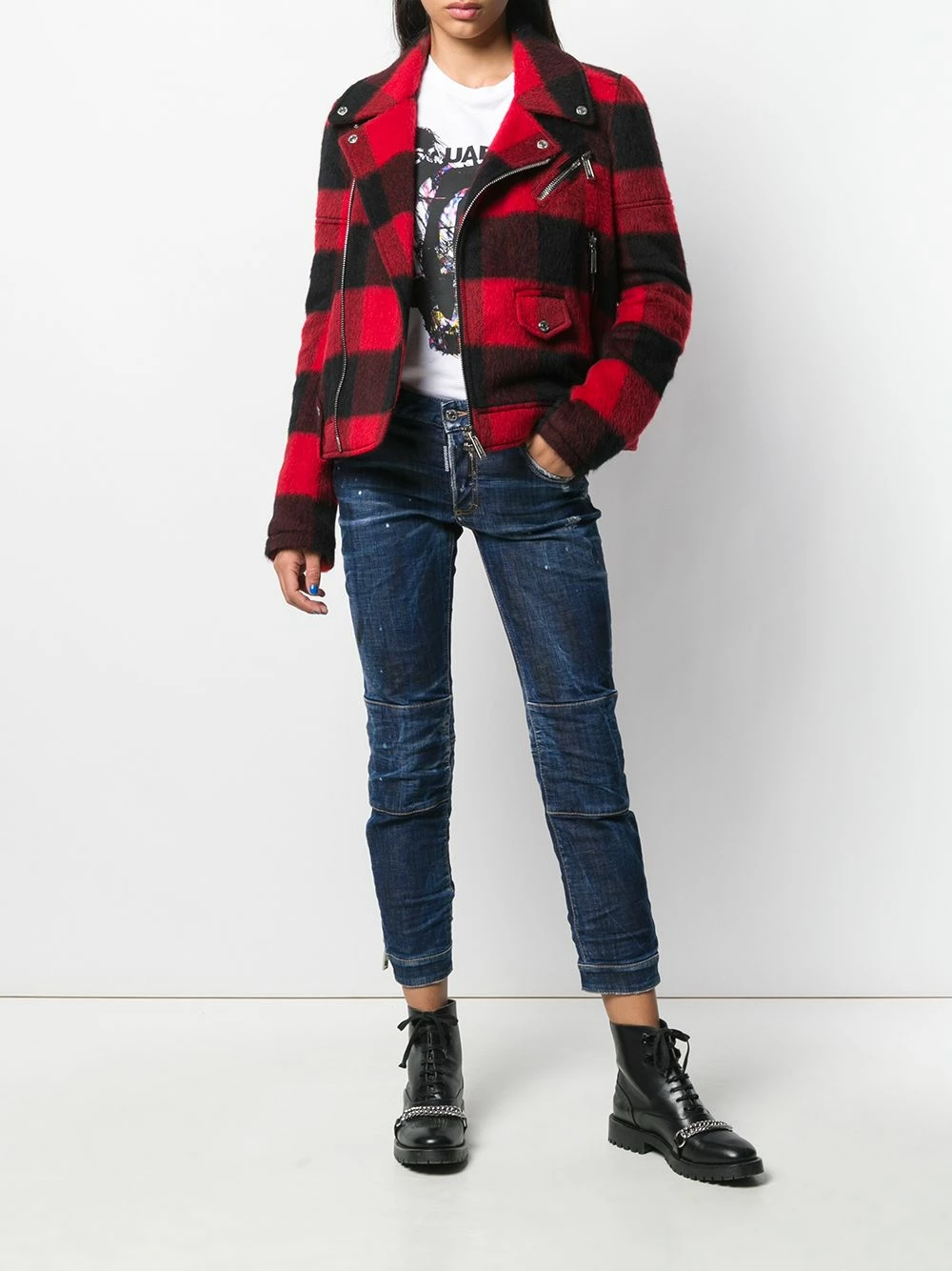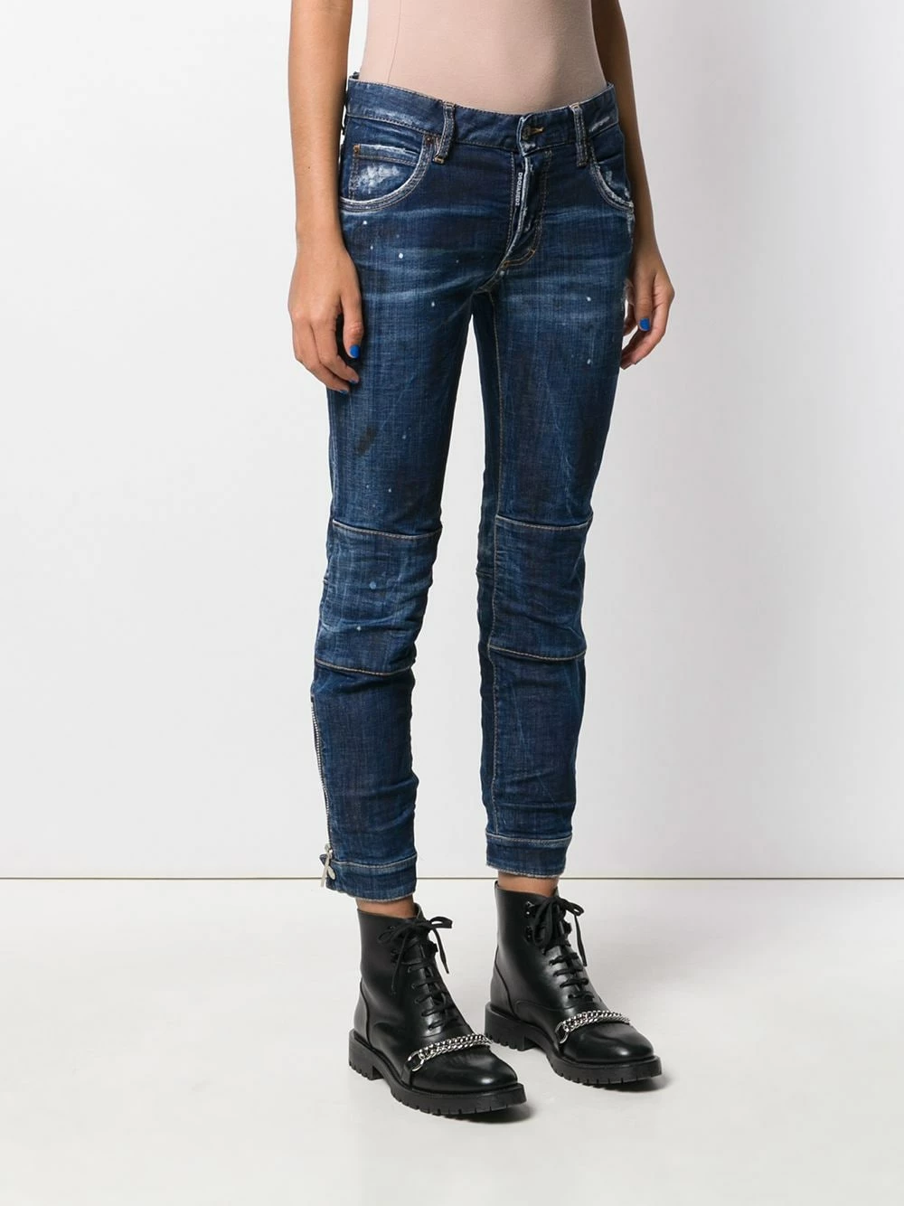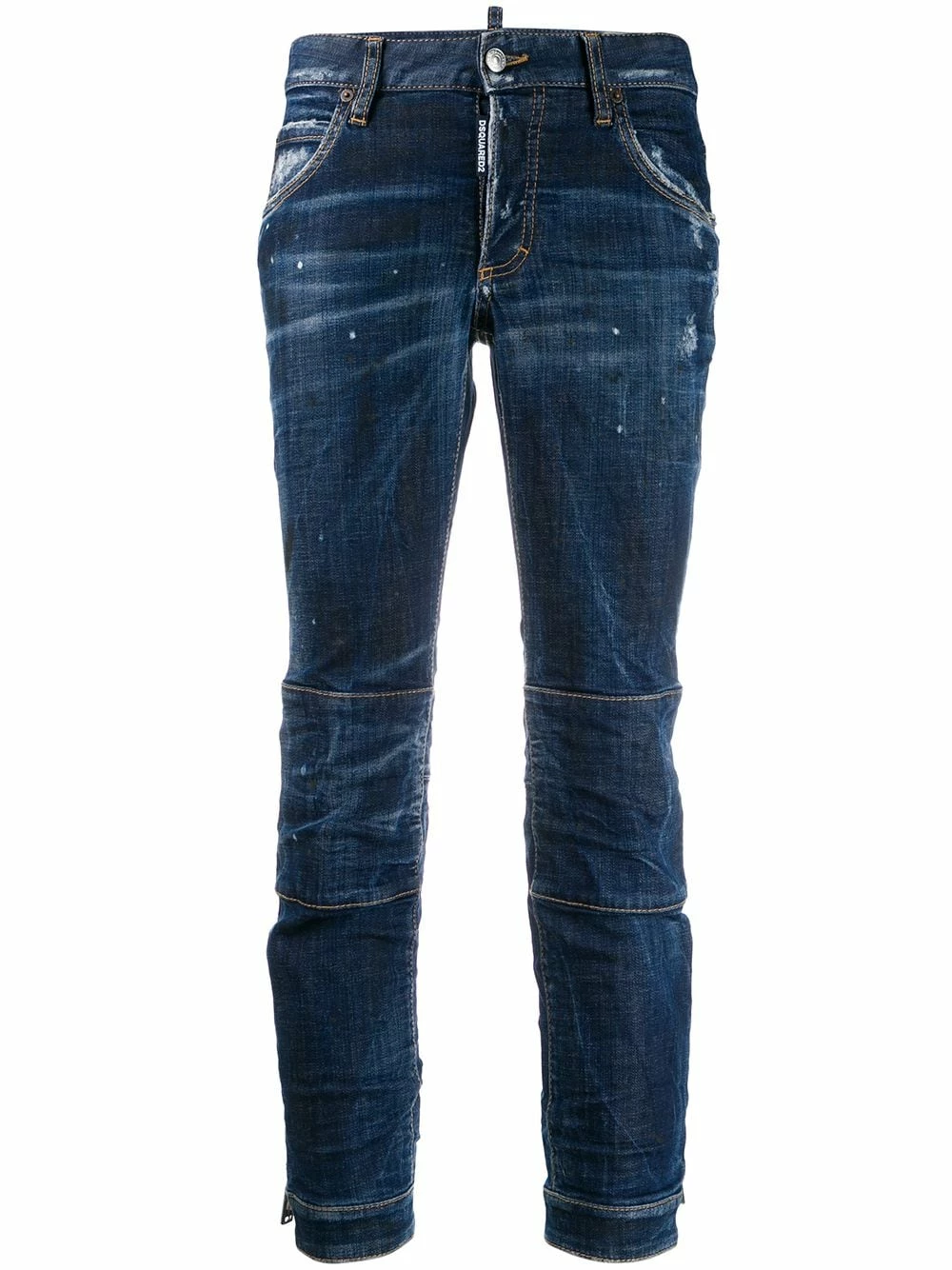 Jean slim à effet usé en coton Dsquared2 avec taille basse, passants de ceinture à la taille, patte de boutonnage sur le devant, coupe classique cinq poches et effet usé.