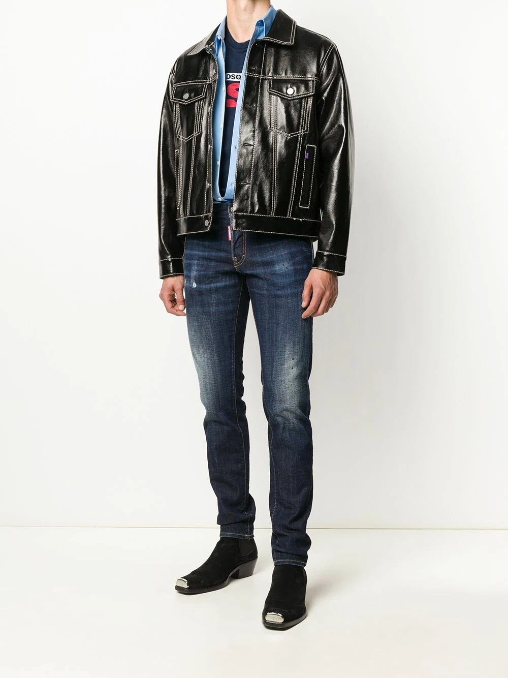 Passants de ceinture, fermeture à zip et boutons sur le devant, 5 poches classiques, coupe ajustée. Couleur : bleu.