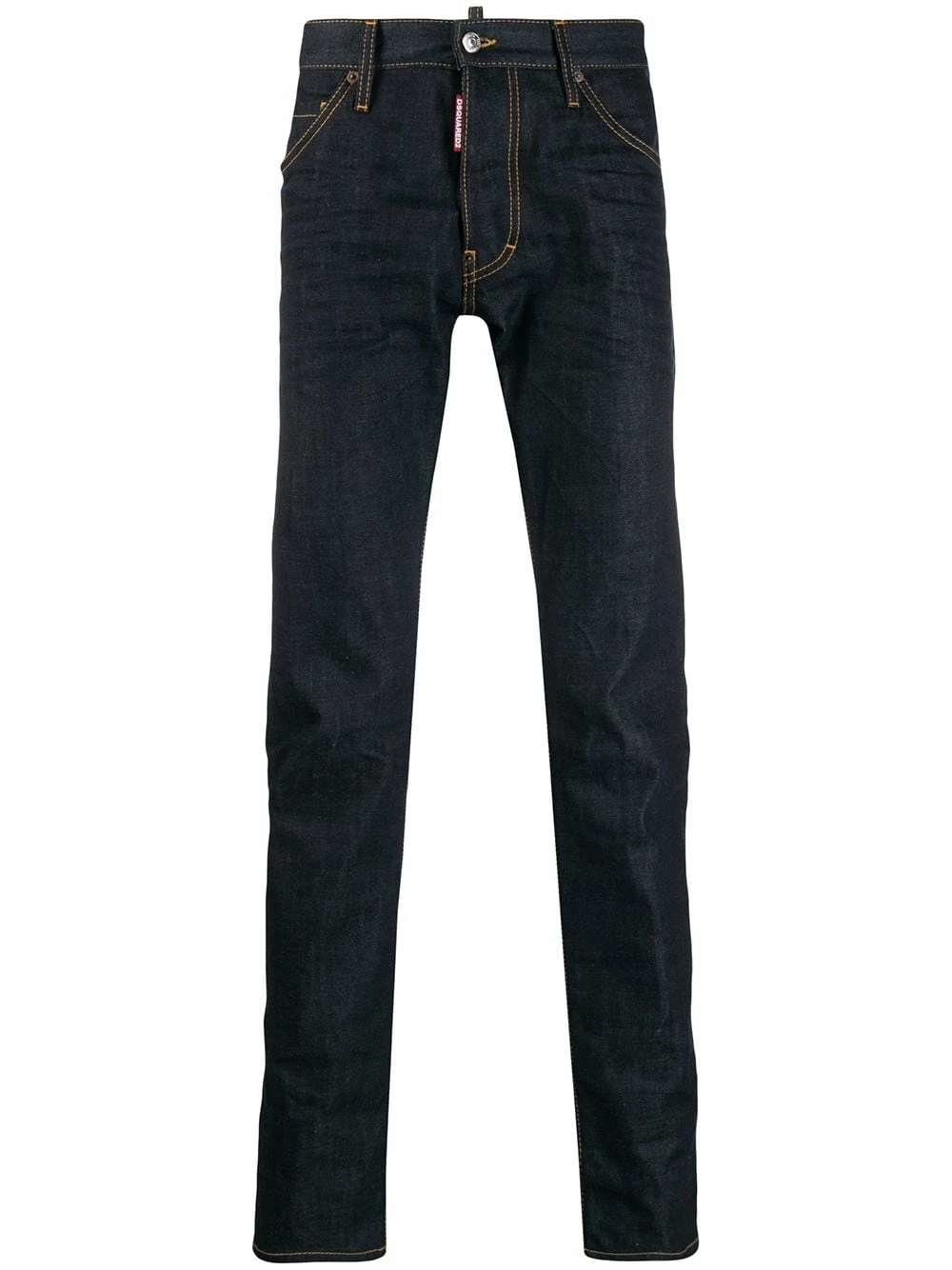 Jean slim classique en coton Dsquared2 avec taille normale, passants de ceinture à la taille, patte de boutonnage sur le devant et coupe classique cinq poches.