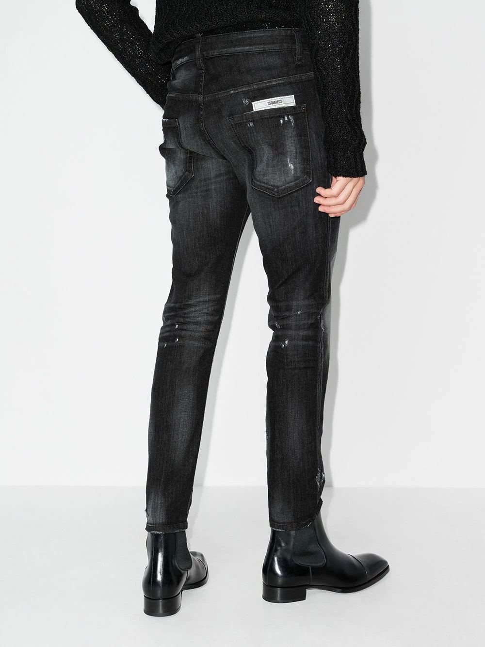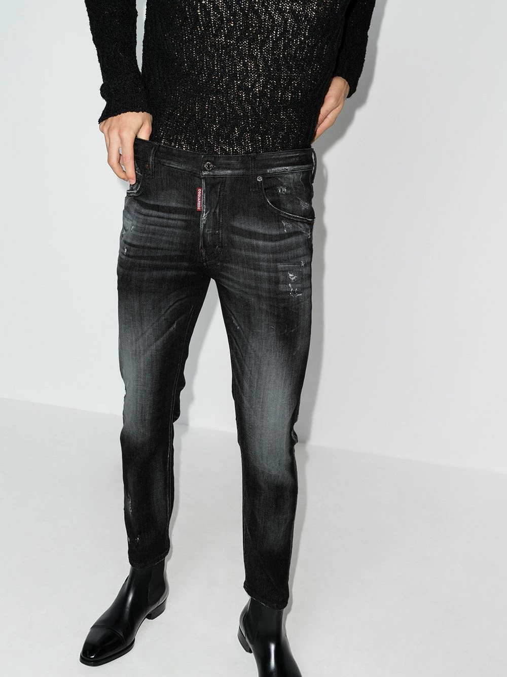 Taille mi-haute, passants de ceinture, fermeture boutonnée, effet délavé, cinq poches classiques, finitions à effet usé. Couleur : noir. Matière : coton mélangé.